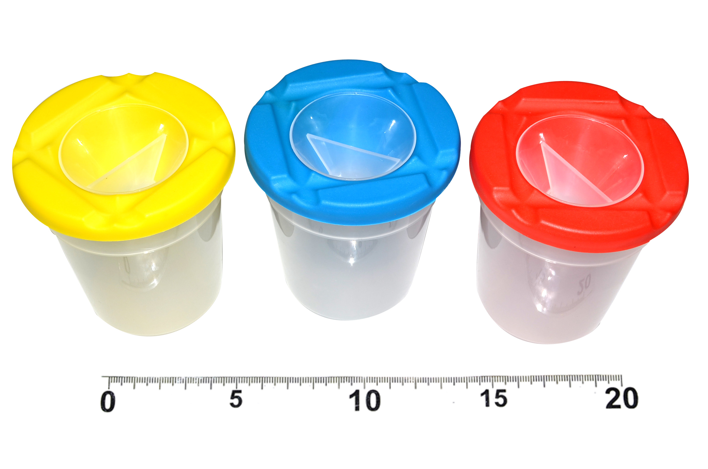 Už žádné barevné nehody a zničená umělecká díla. Kelímek má uzavíratelné víčko, takže i když jej převrhnete, voda ven nevyteče.