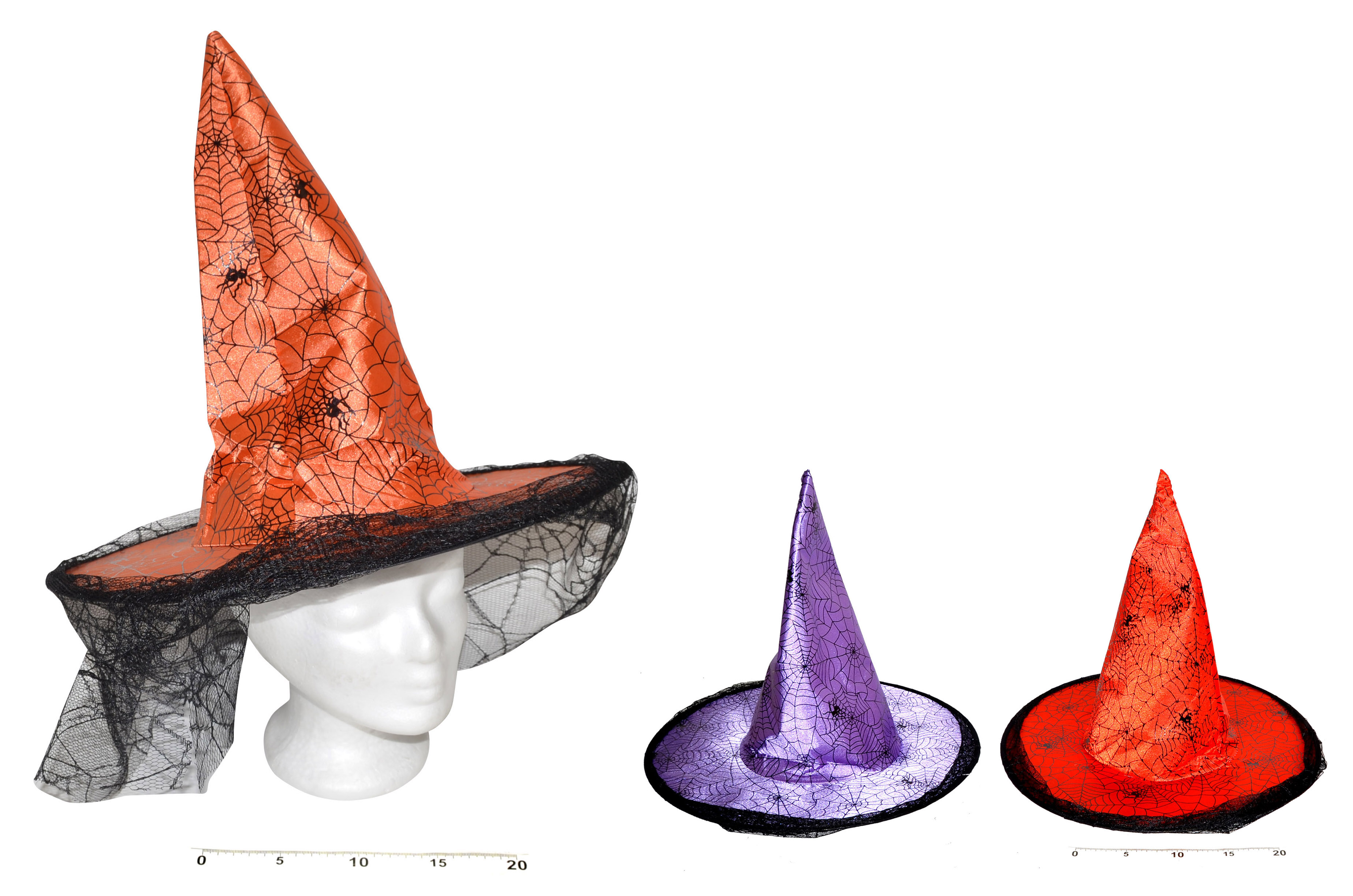 Klobouk na karneval jako doplněk ke kostýmu čarodějnice. Pokud se chystáte na párty nebo halloweenskou oslavu tento klobouk nesmí chybět ve vašem šatníku.