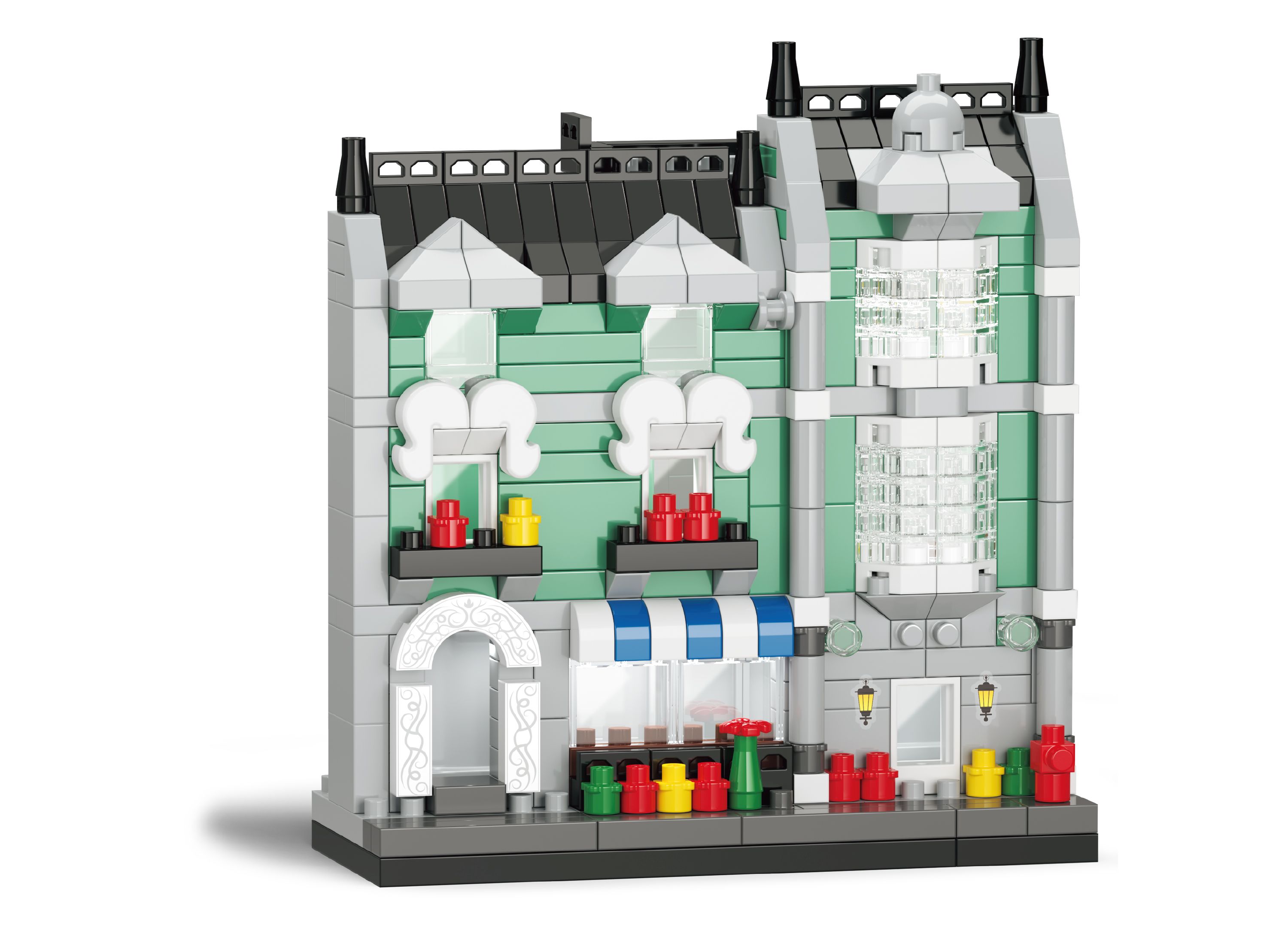 KOCO Stavebnice Obchod s potravinami 329 dílků. Rozměry 8x3x9 cm. Obrázkový návod na sestavení součástí.