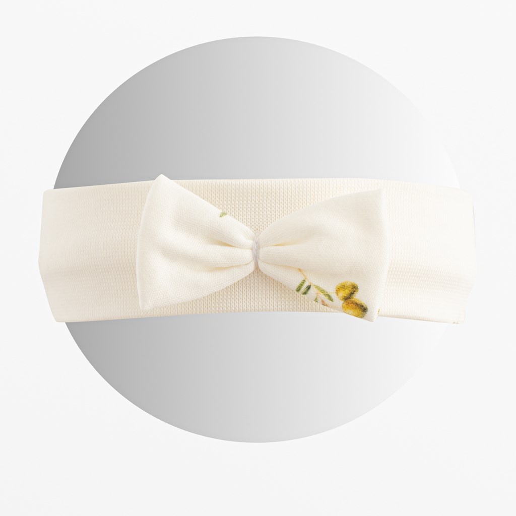 Krásná, módní bavlněná dívčí čelenka české značky New Baby Olivy, potěší všechny malé parádnice. Čelenka je zdobena olivkami, je pružná a dobře se přizpůsobí hlavičce miminka.