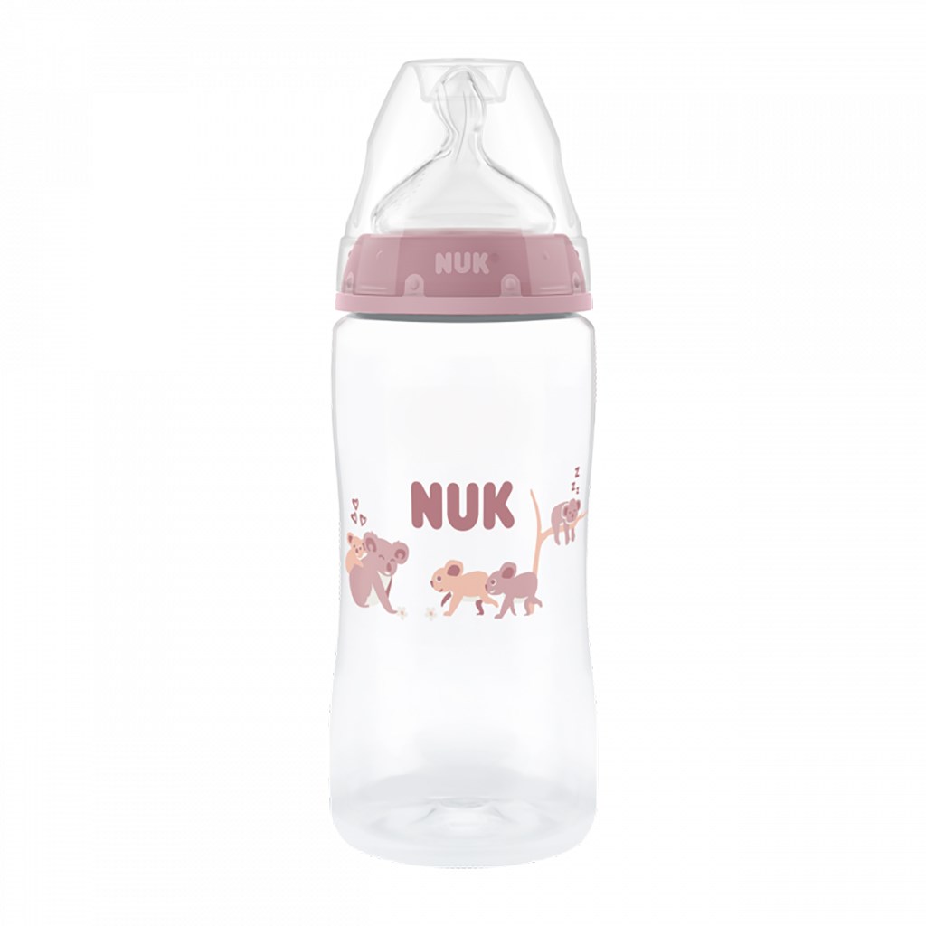 Krásná kojenecká láhev NUK First Choice s kontrolou teploty. Speciální tvar typický pro savičky NUK s ortodontickou antikolikovou savičkou je modelován podle mateřské bradavky při kojení. Ponechává dostatek prostoru pro přirozené sací pohyby jazyka i čelisti. Vylepšený systém proti polykání vzduchu při pití Anti Colic Air System zajišťuje přirozený tok mléka, aby dítě pilo uvolněně bez polykání vzduchu. Kojenecké láhve jsou nyní vybaveny novou NUK kontrolkou teploty a pomáhají tak zabránit tomu, aby vaše dítě pilo příliš horký příkrm. Kontrolka vypadá jako teploměr, je umístěna mezi ryskami a teplota obsahu láhve změní její barvu. Pokud je příkrm příliš horký, modrá kontrolka se změní na bílou. V ideálním případě by měl příkrm mít tělesnou teplotu (37 °C), což odpovídá modrému zabarvení displeje. Vyrobena z vysoce kvalitního nerozbitného plastu polypropylenu a neobsahuje BPA (Bisfenol A). Obsah láhve 300 ml. Vhodná pro děti od 3 měsíců M (středně velký otvor = pro dětskou výživu). Klinicky testováno.