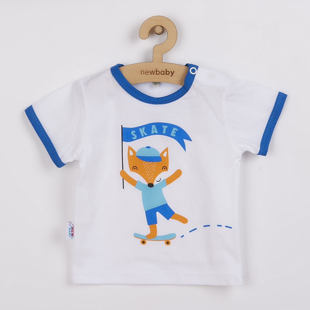Krásná a cool 2-dílná bavlněná soupravička české značky New Baby Liška. Soupravička obsahuje tričko a kraťásky. Tričko s krátkým rukávem s barevným lemováním okolo krčku a rukávů je zdobeno veselým obrázkem lišky a nápisem SKATE. Tričko má zapínání na ramínku pro snadné oblékání. Pohodlné kraťásky jsou jednobarevné s gumičkou v pase. Super letní hit a užitečný kousek do šatníku malého chlapečka. Soupravička je vyrobená s ohledem na potřeby malých dětí s velmi příjemňoučkého a jemného materiálu. Skvěle ji využijete nejen do kočárku, ale i na procházky či jako pohodlné oblečení na doma. Má všestranné využití. Složení 100% bavlna