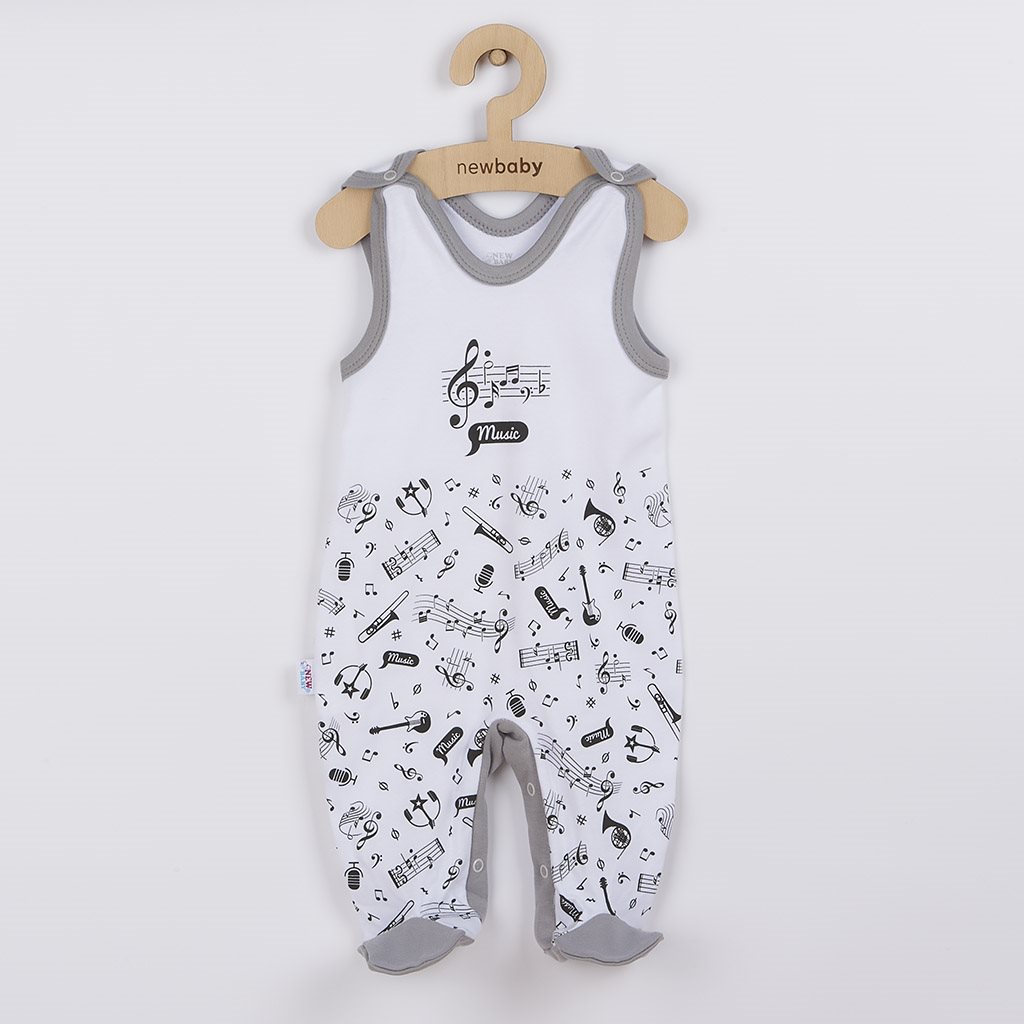 Originální, hravé a zároveň veselé bavlněné kojenecké dupačky New Baby Music pro miminka. Dupačky jsou jednobarevné s originálním obrázkem notiček a nápisem Music. Spodní část je celopotištěná notičkami a hudebními nástroji. Zapínání na cvočky na ramínkách a mezi nožičkami usnadňuje oblékání a přebalování. Měkký, příjemný a velmi kvalitní materiál zaručí spokojenost Vašeho dítěte. Náše originální a zároveň veselé dupačky jsou vhodné pro kluky i holčičky. Složení: 100% bavlna. Rozměry: obvod kolem hrudníku cca 19 cm, délka od rozkroku cca 13 cm, délka od ramínek cca 45 cm.