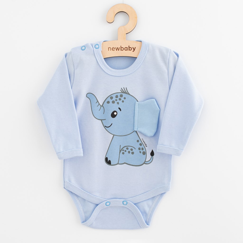 Roztomilé bavlněné kojenecké body s dlouhým rukávem české značky New Baby Happy Elephant pro miminka. Body je zdobeno roztomilým obrázkem slůně se 3D ouškem, které dětem poslouží i jako uklidňující element, nebo hračka při usínání. Praktické zapínání na cvočky na ramínku a mezi nožičkama velmi usnadní oblékání a přebalování. Složení: 100% bavlna. OEKO-TEX STANDARD 100. Věříme, že naše autorská kolekce vás potěší kvalitou, jemností i designem.