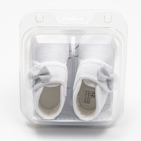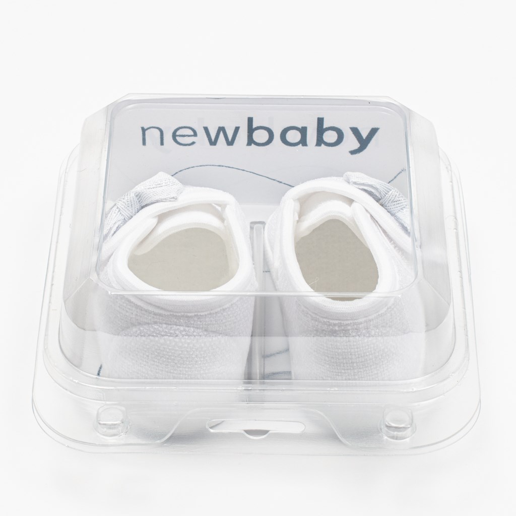 Kojenecké capáčky New Baby pro miminka. Krásné botičky s moderním vzhledem na suchý zip. Capáčky přiléhají k nožičce a mají široký vnitřek, což umožňuje volný pohyb prstů a svalů. Výrobek není určen k chůzi. Jsou velmi lehké s tenkou syntetickou podrážkou. Složení: tkanina typu len:100% polyester. Podrážka: syntetický materiál PVC bez BPA. Délka vnitřní stélky 10 cm. Určeno pro děti 0-3 měsíců. Dodáváné v praktické krabičce. Upozornění: pod textilní vložkou se někdy nachází papírová vložka, která drží tvar capáčky. Před prvním použitím odstraňte tuto papírovou vložku.