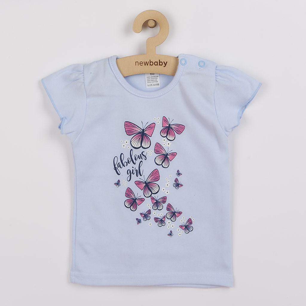 Roztomilá a stylová 2-dílna soupravička pro holčičky české značky New Baby Butterflies. Soupravička se skládá z trička a sukýnky. Tričko s krátkými nařasenými rukávy je zdobeno obrázkem motýlků. Zapínání na ramínku na cvočky ulehčí oblékání přes hlavičku miminka. Tmavě modrou sukýnku zdobí krásný volánek, který dodává sukýnce ten správný šmrnc. V pase je širší guma, která netlačí na bříško miminka. Soupravička je precizně a kvalitně ušitá a je vyrobená z velmi příjemného materiálu, ve kterém se bude vaše holčička cítit velmi pohodlně. Moderní střih, motýlky, volánky a krásné barvy. To vše najdete na naší soupravičce Butterflies, která je neodmyslitelnou součástí holčičího oblečení. Složení: tričko: 100% bavlna, sukýnka: 95% bavlna, 5% elastan.