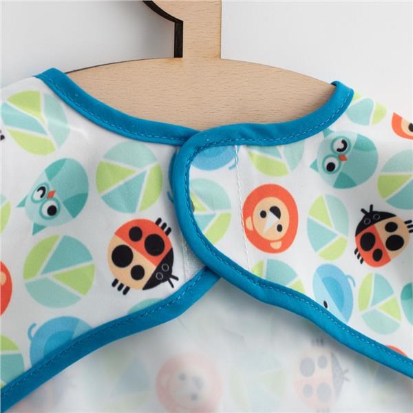Dětský bryndák-zástěra New Baby účinně ochrání oblečení vašeho dítěte před ušpiněním při jídle a hraní. Vyrobeno z lehkého a měkkého materiálu. Bryndáček má pohodlné zapínání na suchý zip a praktickou kapsu. Bryndák je ušitý ze dvou vrstev materiálů. Spodní vrstva je z nepromokavého materiálu. Při zašpinění lze bryndák otřít vlhkým hadříkem, nebo prát v pračce. Charakteristika