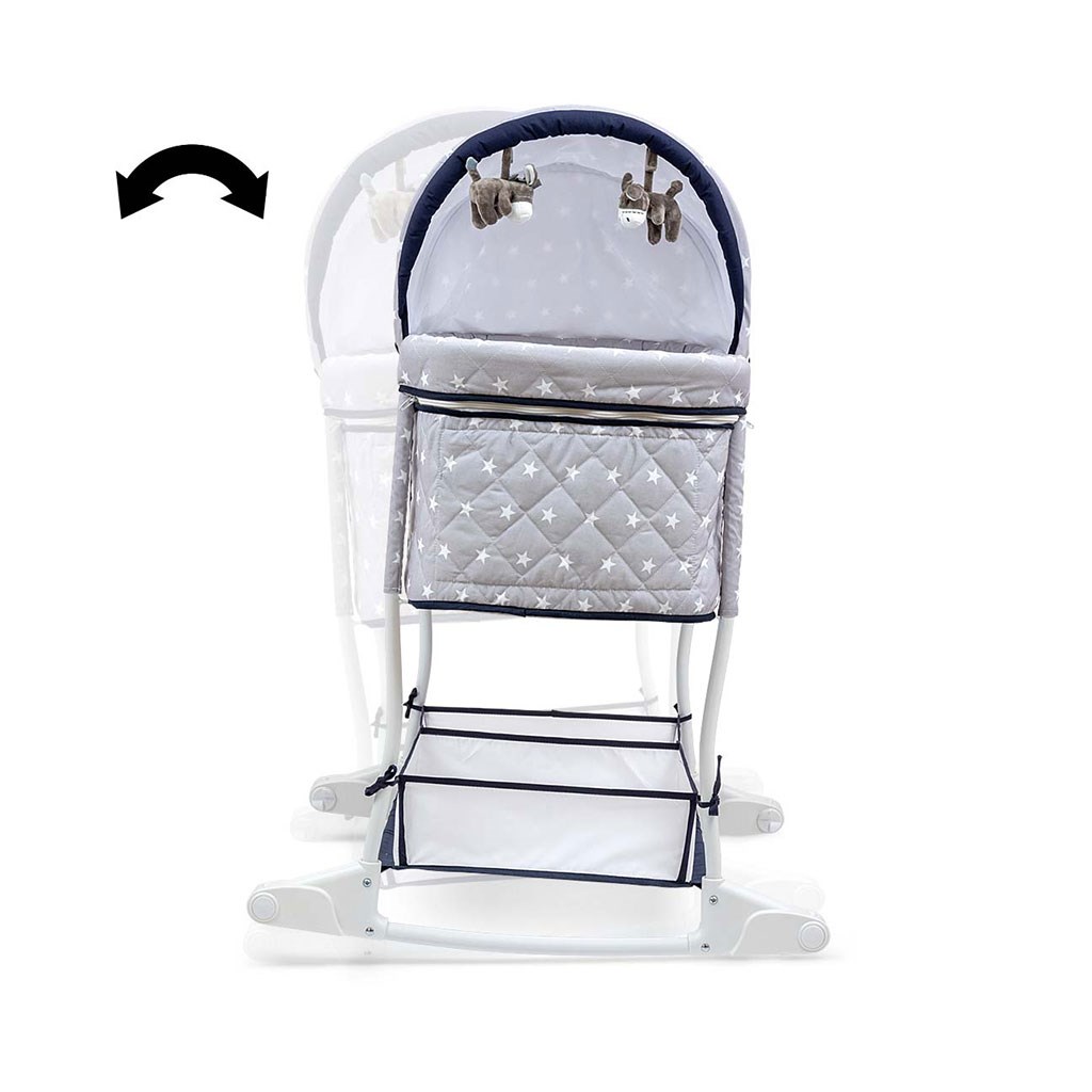 Moderní a především multifunkční kolébka Dream On 2v1 od Milly Mally. Tato postýlka/kolébka kombinuje 2 funkce - jako postýlka pro děti od prvních dnů života a jako kolébka.