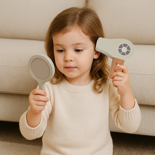 Sada 17 v 1 je ideální volbou pro malé stylistky a vizážistky – bezpečná dřevěná hračka, která rozvíjí představivost, kreativitu a sebevědomí. V balení najdete kosmetickou taštičku s doplňky na líčení a úpravu vlasů, jako fén, hřeben, rtěnka či zrcátko. Je to vzdělávací hra, která spojuje nauku přes přesnost s fantastickým dobrodružstvím ve světě krásy – ideální dárek, který potěší každé dítě.