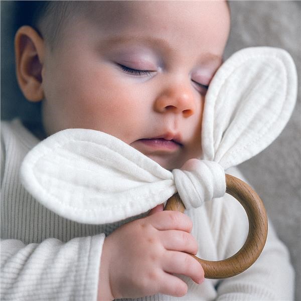 Kousátko s mušelínovou plenou je ideální sada, když se dítěti prořezávají zoubky. Kousátko je vyrobeno z bukového dřeva šetrného ke středu a měkké mušelínové látky. Zcela bezpečné pro děti přináší uklidňující úlevu při prořezávání zoubků. Kousátko lze použít také jako hračku pro miminka. Kousátko se dokonale hodí k našim dalším mušelínovým výrobkům a vytváří tak krásnou sadu, kterou lze darovat na dětskou oslavu.