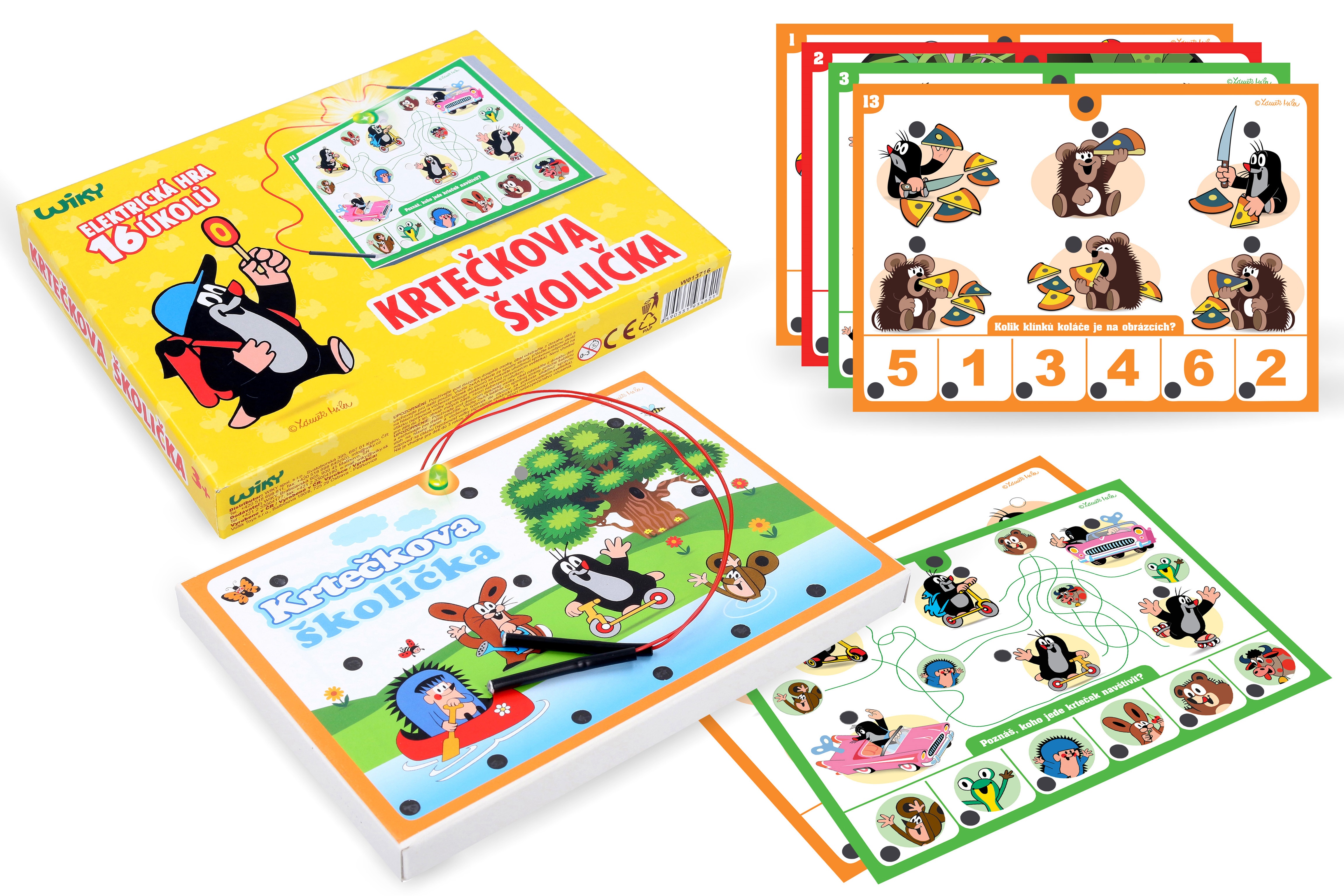 V elektronické hře Školička mají děti za úkol odhalovat souvislosti mezi obrázky a propojovat je vodivým drátkem.