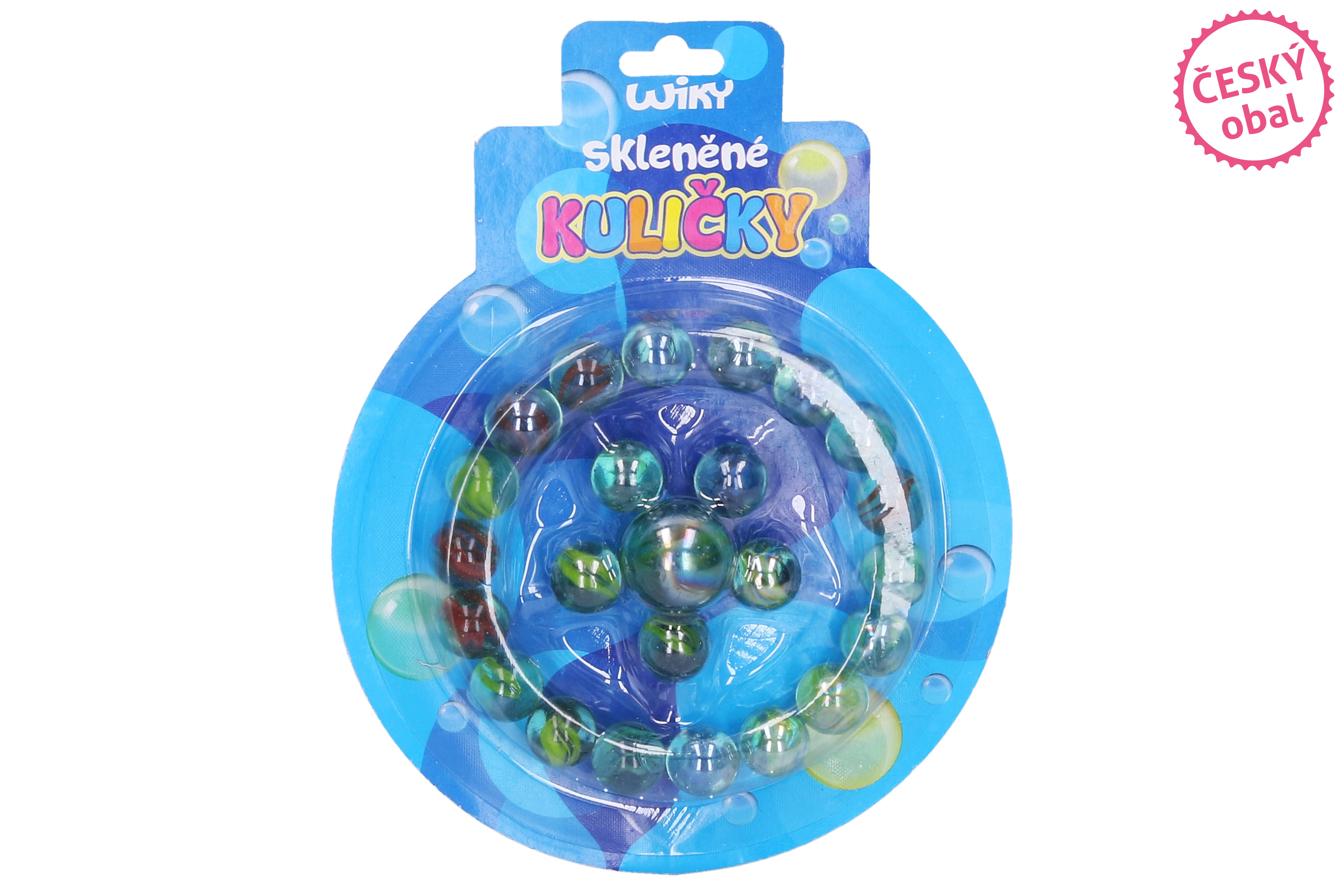 Kuličky - barevný set 24 ks - Český obal. 23 ks o průměru 16 mm, 1 ks o průměru 25 mm. 3 varianty - bílá, modrá, zelená.