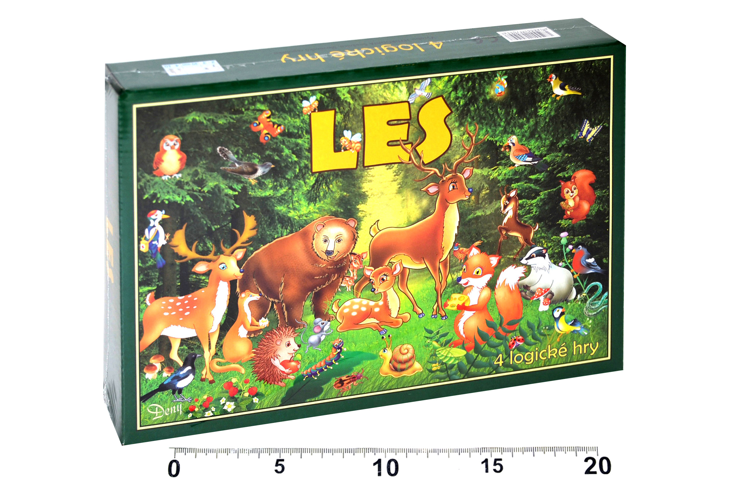 Soubor naučně-logických společenských her LES obsahuje součásti pro čtyři hry. Pomocí těchto her získají děti veselým a hravým způsobem nové poznatky o rostlinách a lesních zvířátkách.
