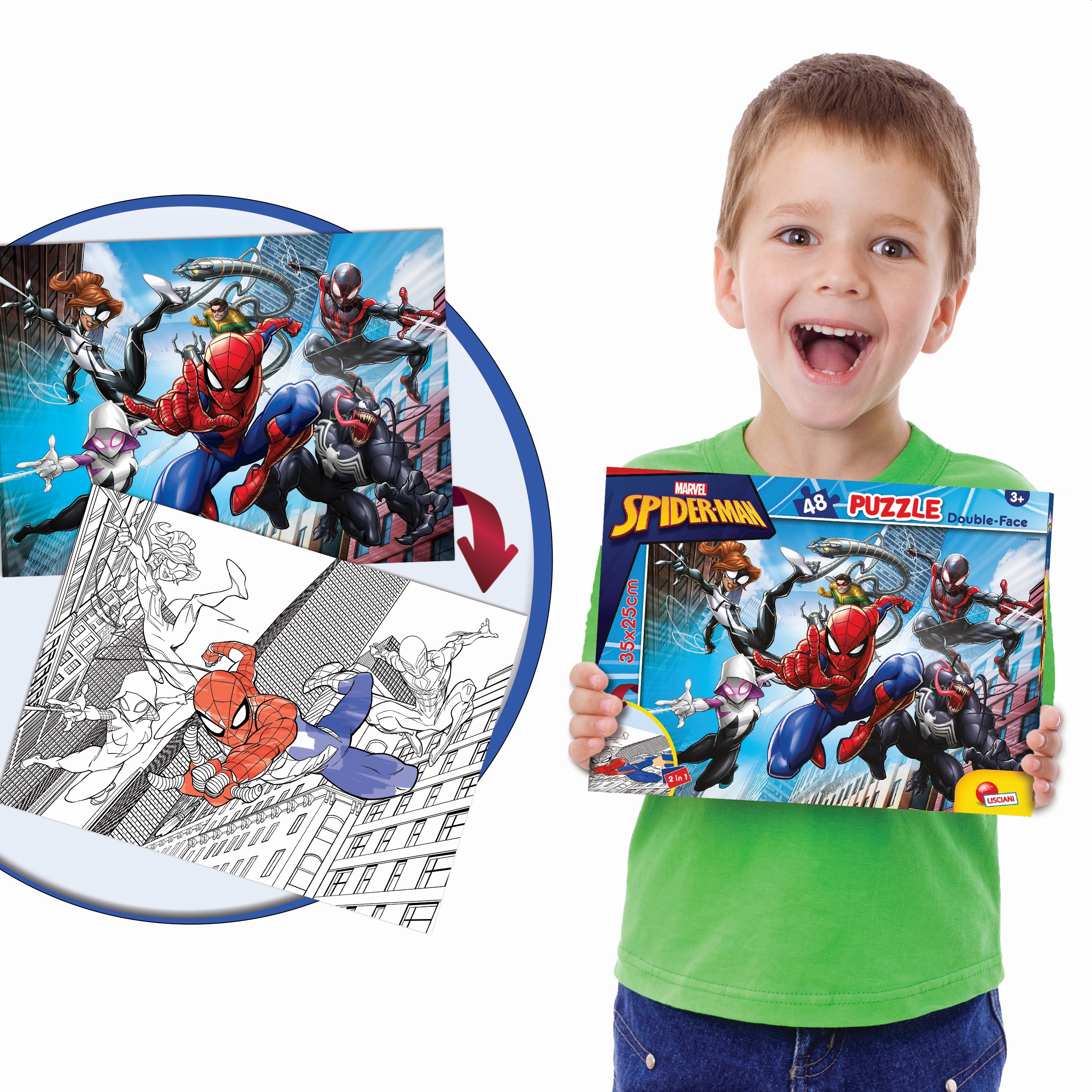 Lisciani Spider-Man puzzle oboustranné. Rozměry 35x25 cm. 48 dílků. Postav obrázek na jedné straně a vybarvi obrázek na druhé.