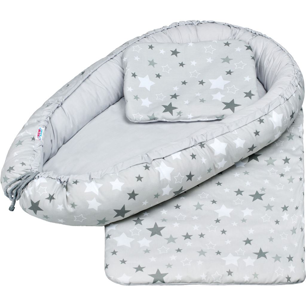 Luxusní hnízdečko s peřinkami pro miminko New Baby. Přenosné hnízdečko pro miminko vhodné od 0-3 měsíců. Navozuje miminkům pocit bezpečí, kopíruje tvar mámina těla a děťátko se tak cítí spokojeně jako u maminky v bříšku. Miminku se daleko lépe usíná a je klidnější. Příjemňoučké a měkkoučké hnízdečko chrání miminko před pádem nebo skutálením. Je vyrobeno z bezpečných materiálů a je vynikajícím pomocníkem pro první měsíce života miminka. Složení: svrchní materiál: 100% bavlna, výplň: antialergické vlákno. Rozměry: vnější: cca 78x48 cm, vnitřní: 60x31 cm. Složení peřinky: povlak: 100% bavlna, výplň: 100% polyester. Rozměry pěřinky: cca 63x46 cm, polštářek: cca 30x22 cm. Peřinky lze využít také do kočárku nebo postýlky. Klademe důraz na kvalitu a proto jsou peřinky do kočárku ušity z velmi kvalitního materiálu, který nepouští barvu, a nevyvolává alergické reakce. Vše je vyplněno antialergickým vláknem.