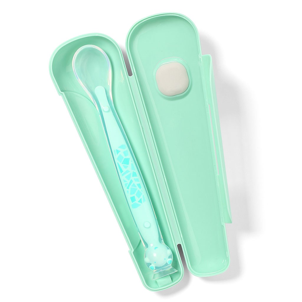 Silikonová lžíčka s přísavkou v pouzdře je ideální na doma, na procházku nebo na cesty. Má vhodný tvar a je ideální k tomu, aby se vaše dítě naučilo jíst samostatně. Vyrobeno z vysoce kvalitního silikonu určeného pro styk s potravinami.