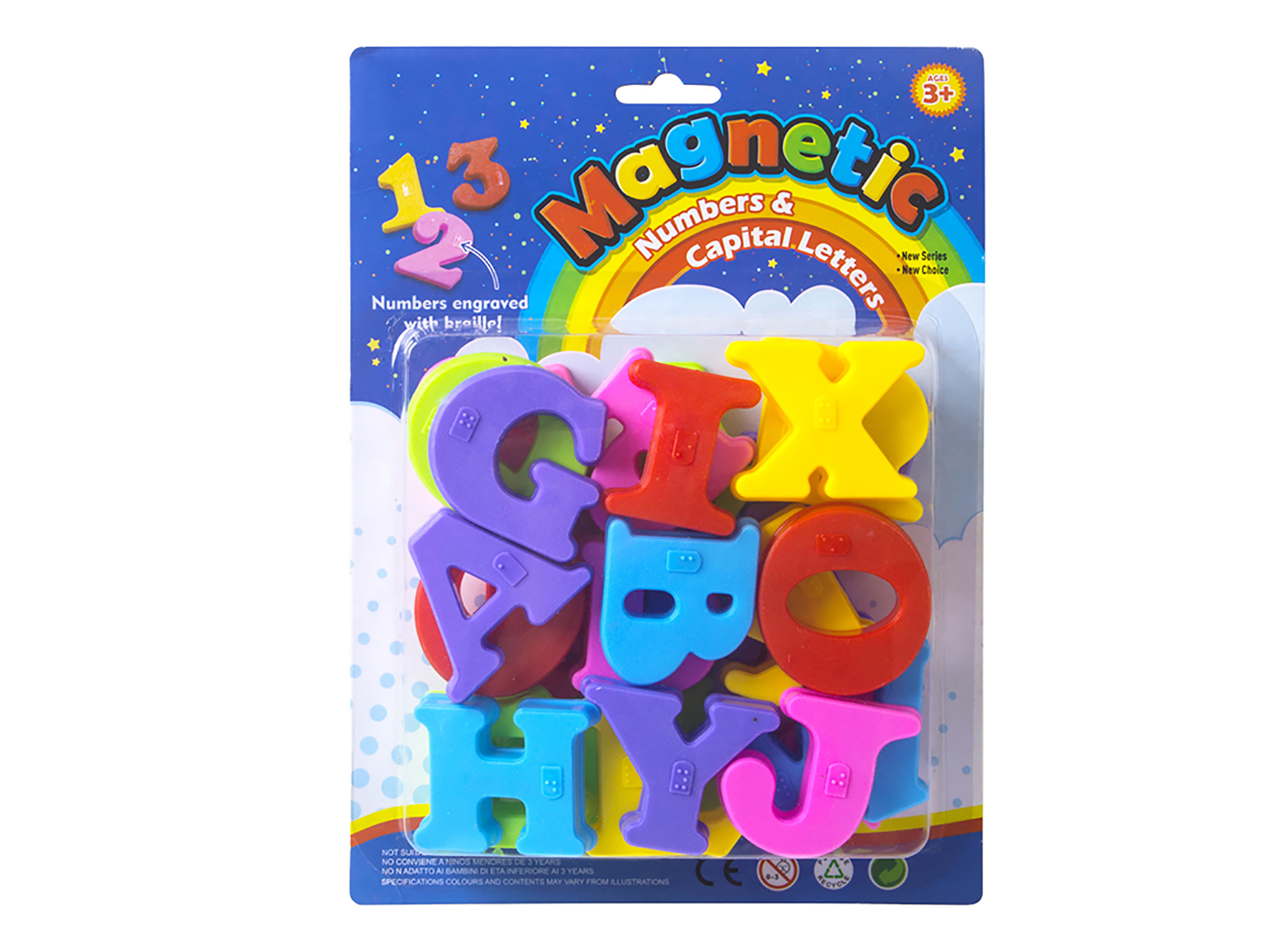Magnetky abeceda. Rozměry písmenek 6x4,5x0,5 cm. Balení obsahuje 26 písmen.