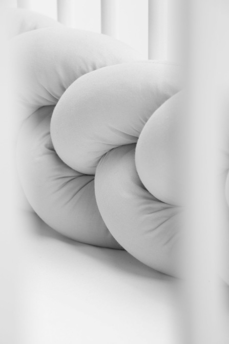 Chránič postýlky Sensillo je příjemný na dotek a měkký. Byl vyroben z bavlny a antialergické silikonové kuličky. Na koncích každého prýmku jsou přidány stuhy, které slouží k jeho upevnění k postýlce. Uvázáním opletu k postýlce zajistíte vašemu dítěti bezpečný a klidný spánek. Prýmek bude také dobře fungovat jako hnízdečko pro miminko, dekorace do pokoje nebo izolace od chladné zdi.
