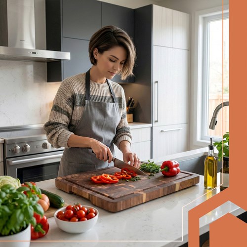 Vsaďte na pevnost, eleganci a spolehlivost. Velká a silná kuchyňská deska z akáciového dřeva o rozměrech 43 × 33 × 3 cm je nástroj, který se skvěle uplatní v každé kuchyni. Je pevná, odolná vůči vlhkosti a ideální jak pro každodenní krájení, tak pro efektní servírování. Její přírodní struktura podtrhuje jedinečný design, zatímco praktická madla a drážka na zachytávání šťávy zvyšují komfort při práci.