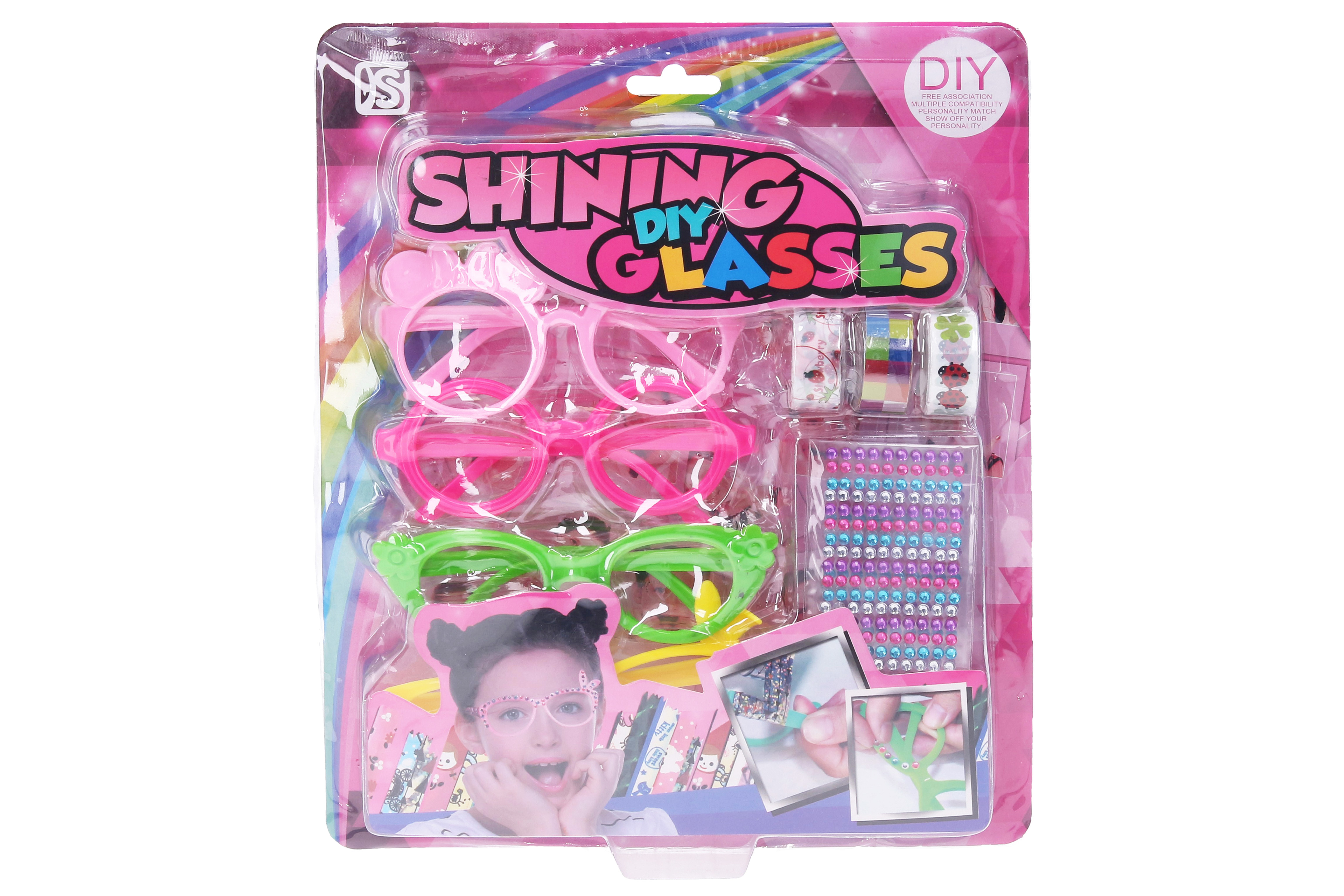 Módní set s brýlemi. Součástí 4 brýle, lepící pásky, kamínky.