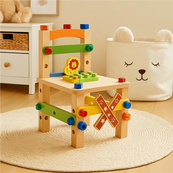 K VLASTNÍMU SESTAVENÍ – židlička je rozdělena na části, stačí ji jednoduše složit a připevnit pomocí šroubků. Všechny prvky potřebné pro sestavení jsou součástí balení. Není potřeba žádné další nářadí. Dítě si užije spoustu zábavy při skládání.