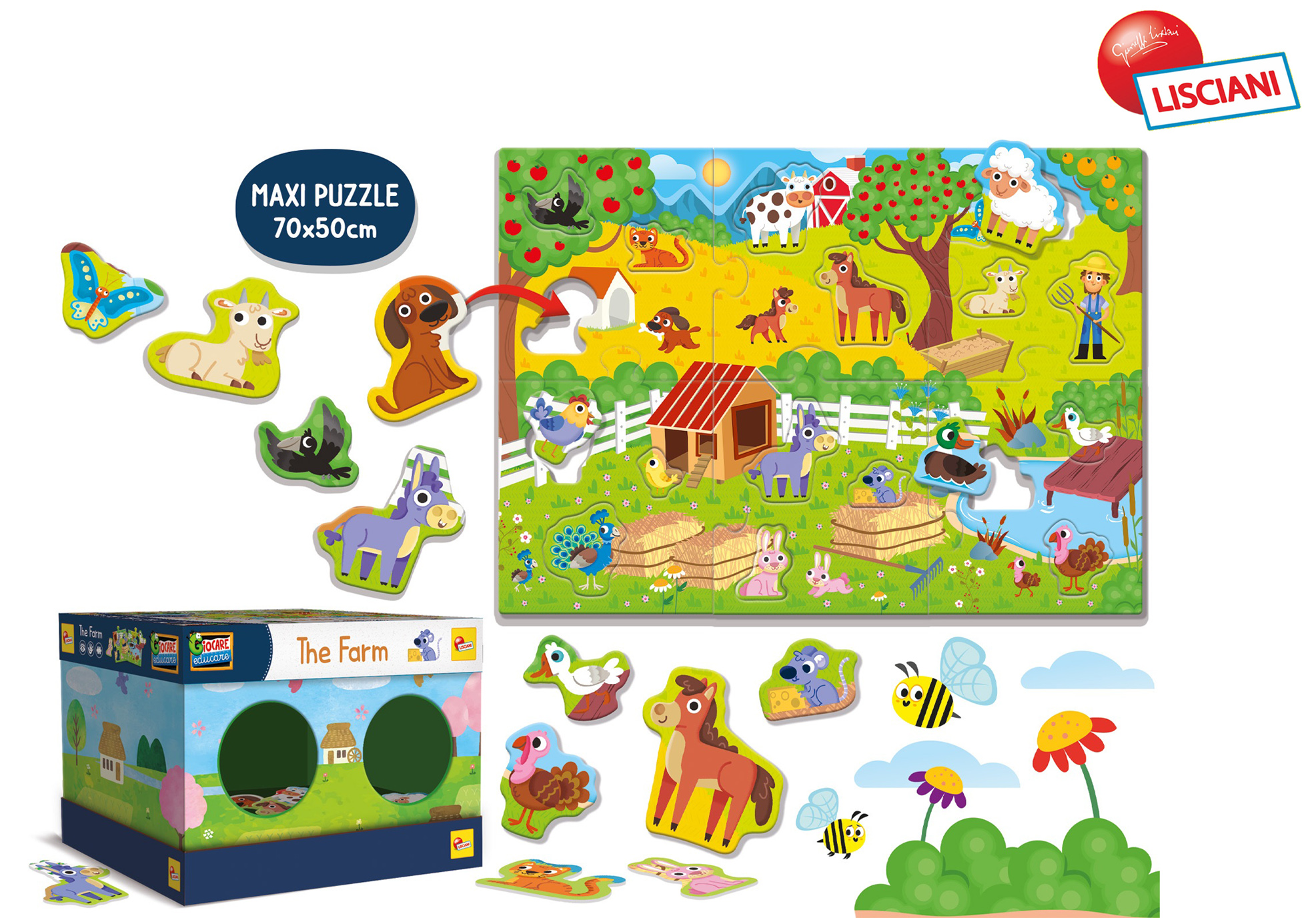 Montessori hra Farma hmatová bedýnka. Obsah balení - skládací bedýnka - puzzle ve tvaru zvířátek, instrukce.
