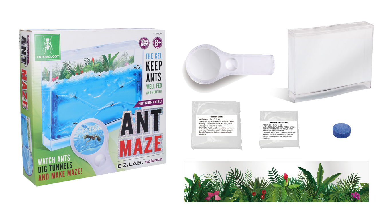 Nahlédněte co se děje v mraveništi a sledujte mravence v akci. Díky tomuto mravenčímu akváriu můžete život mravenců pozorovat celý den a noc u vás doma. Díky gelovému prostředí uvidíte mravence v každém místě akvária. V gelu vytvořte pár otvorů, chyťte pár mravenců a vhoďte dovnitř. Uzavřete kryt a pozorujte, jak mravenci vytvářejí originální strukturu chodeb v gelu. Akvárium vydrží přibližně 6 měsíců. Mravenci se krmí sami, nemusíte se o ně vůbec starat.