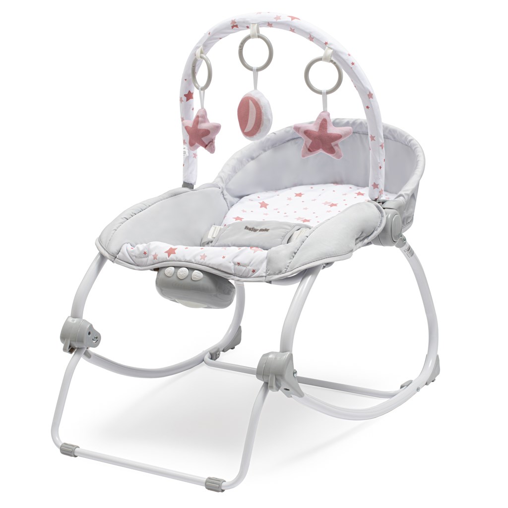 Dětské multifunkční lehátko Baby Mix poslouží vašemu dítěti od narození až do dosažení hmotnosti 18 kg. Pro úplně malá miminka jej lze použít jako houpací lehátko s melodií, světlem a vibrací. Jakmile vaše dítě vyroste, můžete toto lehátko změnit na křesílko. Lze jej aretovat i do pevné polohy vhodné na příklad ke krmení. Je vybaveno odnímatelnou hrazdou se třemi hračkami, nastavitelnou opěrkou zad a vibračním a zvukovým a světelným modulem, který zpříjemní chvíle vašemu dítěti.