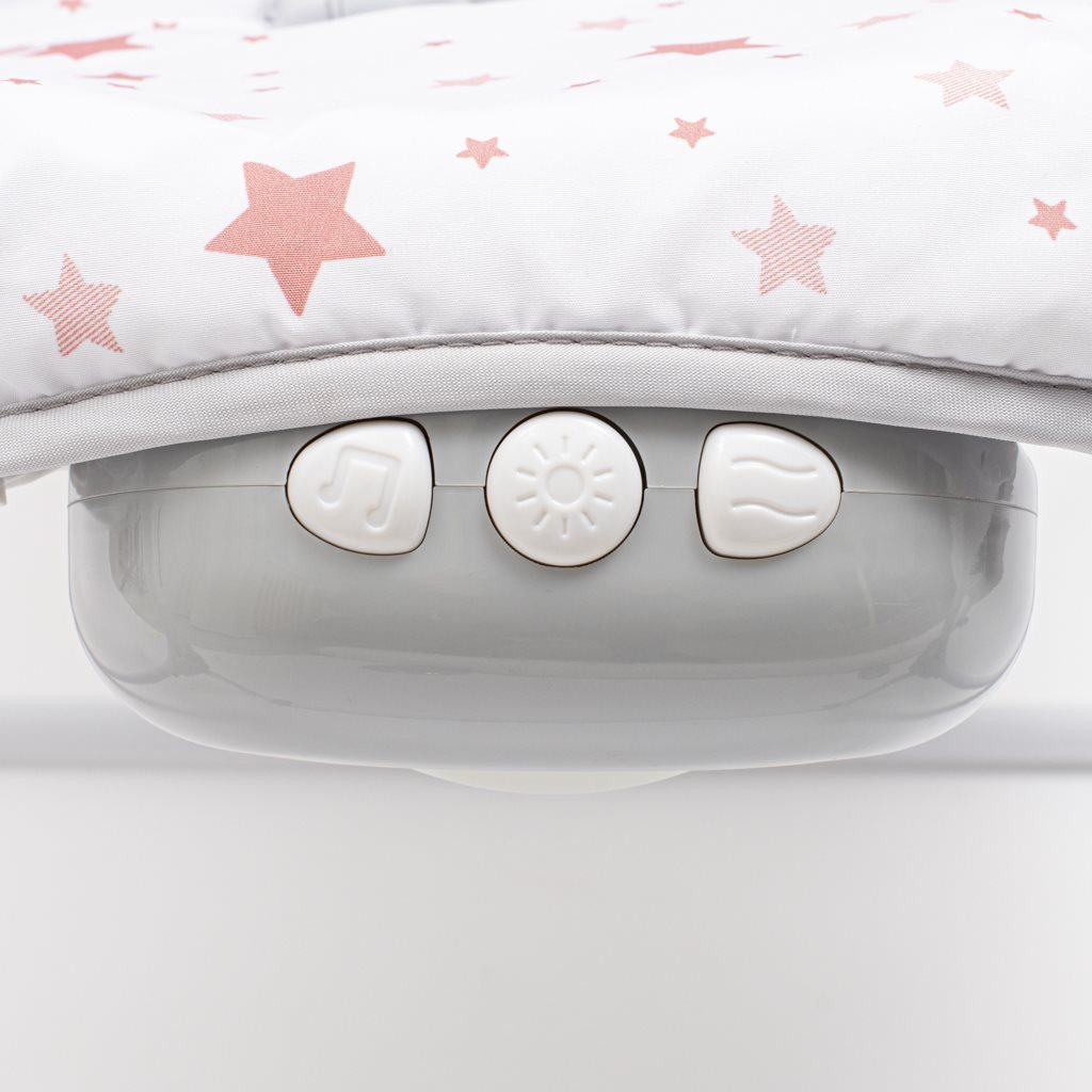 Můžete v něm miminko uložit ke krátkému spánku, stačí pouze opěradlo sklopit, zapnout bezpečnostní pásy, zapnout funkci jemných vibrací a namontovat držák s hračkami. Starší děti v něm mohou sedět, houpat se, prohlížet si knížky nebo si kreslit.