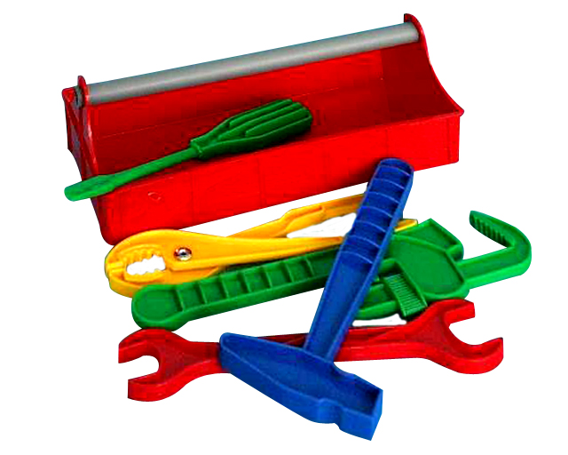 Nářadí ve skříňce. Obsah balení: klíč, francouzský klíč, kladívko, šroubovák, kleště, délka. Skříňka 25x12x10 cm.
