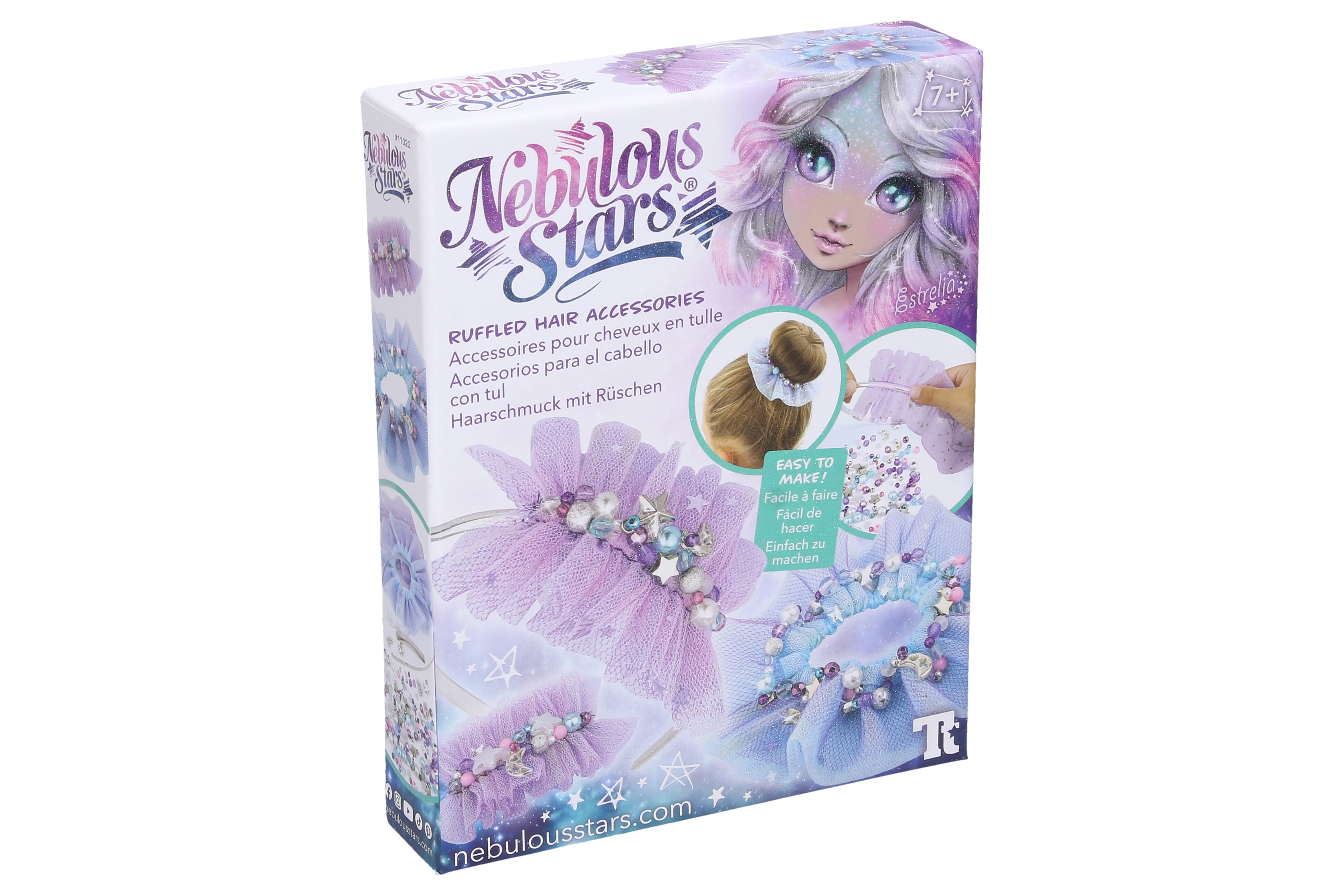 Nebulous Stars ozdoby do vlasů Estrelia. Vyrob si vlastní ozdoby do vlasů s třásněmi. Obsah balení - 3 tylové pásky, 1 čelenka, 1 spona, výběr korálků a přívěšků, gumičky, příběh, návod.