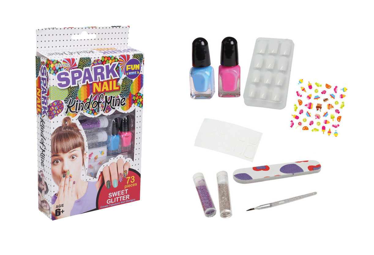 Staň se manikérkou a dopřej svým nehtům krásný a stylový vzhled! Díky setu si můžeš vytvořit originální třpytivé nehty s motivem sladkostí!