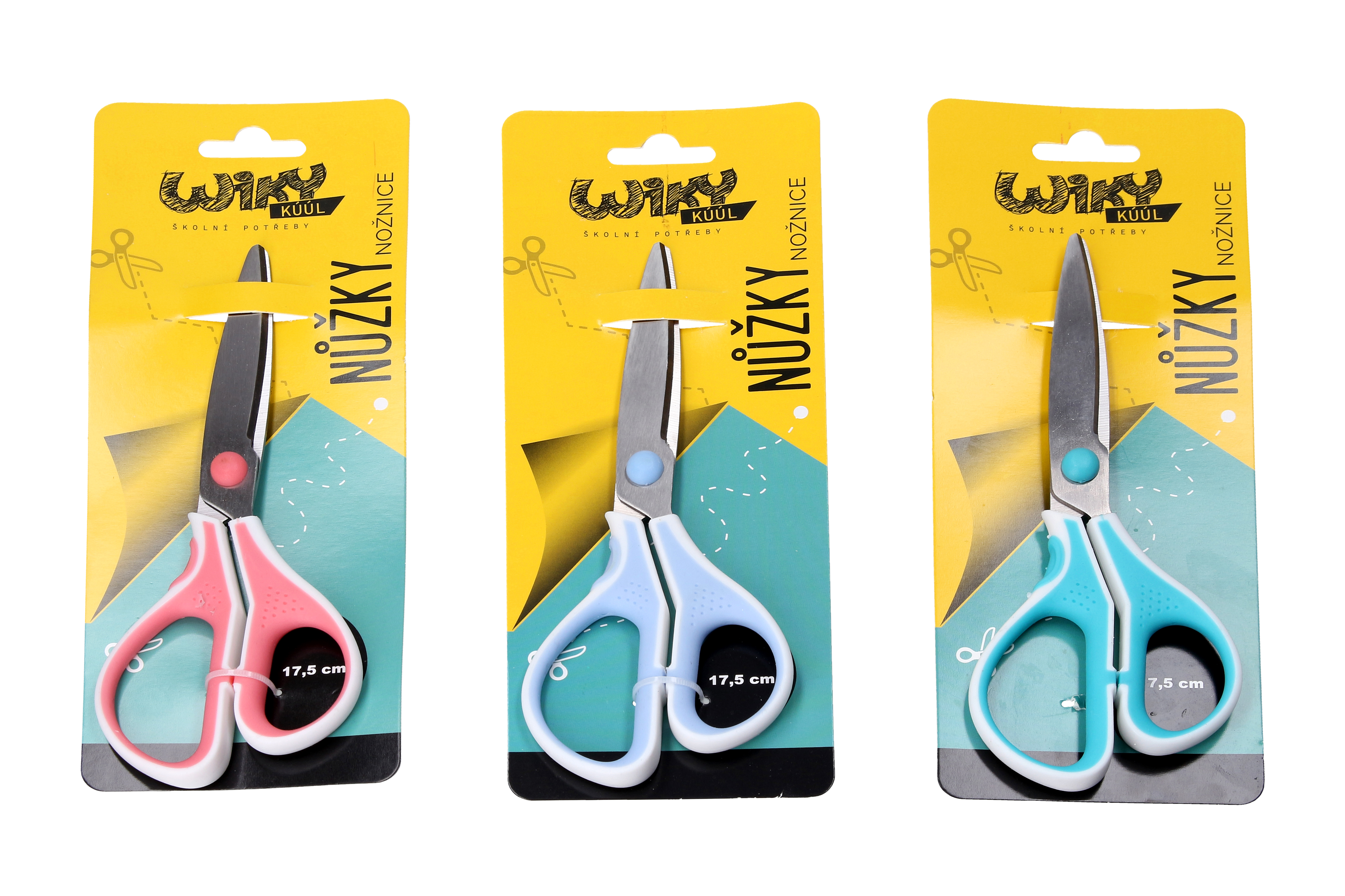 Barevné nůžky s ergonomicky tvarovanou měkkou rukojetí vhodné do školy, domácnosti i kanceláře. Gumový úchyt na nůžkách zamezuje sklouzávání.