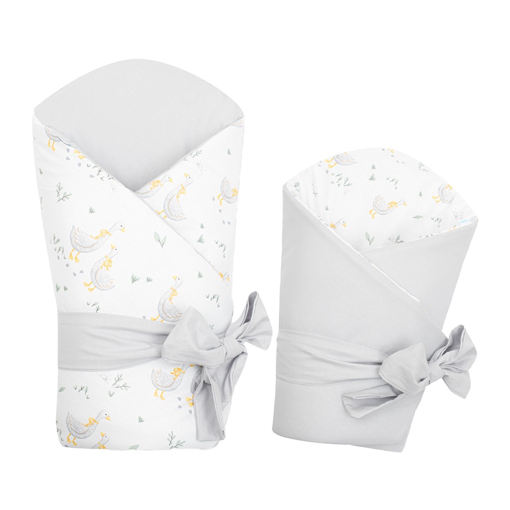 Nádherná dětská oboustranná zavinovačka české značky New Baby Husičky pro miminka. Zavinovačka je vyrobena z kvalitního a jemného materiálu, který zaručí vašemu miminku příjemné teplo. Výplň je až 3 cm co znamená, že zavinovačka je vhodná i na chladnější dny a je dostatečně pevná. Krásný dětský motiv s roztomilými husičkami, polahodí dětským očičkám. Zapínání na suchý zip i pásek na zavázaní na mašli.