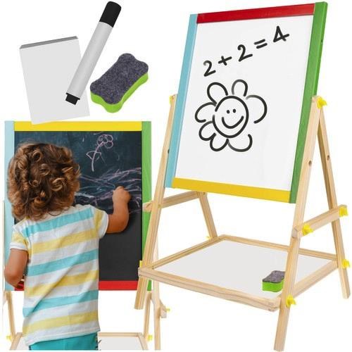 oboustranná – dvě různé pracovní plochy: černá strana pro kreslení křídou a bílá strana pro psaní fixami, děti mohou využívat různé tvůrčí techniky a rozvíjet tak svou kreativitu a dovednosti při hře a učení