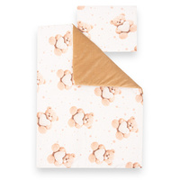 Nádherný oboustranný set New Baby Safari do kočárku. Set je vyroben ze dvou typů tkanin. Bavlněný materiál s krásným dětským motivem z jedné strany a Velvet materiál z druhé strany. Velvet je velice příjemný a jemný na dotek a po dlouhou dobu si zachovává svůj původní tvar. Je ideální jak pro miminka od narození, tak pro větší děti jako deka na hraní, do kočárku nebo na ven. Set obsahuje polštářek a přikrývku. Klademe důraz na kvalitu a proto je set z Velvet ušitý z velmi kvalitního materiálu, který nepouští barvu a nevyvolává alergické reakce. Set je jemný na dotek, hřejivý, tulivý, jedinečný a velmi odlišný od ostatních. Vše je vyplněno antialergickým vláknem. Složení: z jedné strany 100% bavlna potištěná krásným dětským vzorem, druhá strana je Velvet látka-100% polyester, výplň 100% antialergické vlákno. Materiál odpovídá normě Oeko-Tex Standard 100. Rozměry: polštářek: cca 30x25 cm, přikrývka: cca 75x50 cm. Tyto výrobky jsou bezpečné, protože: