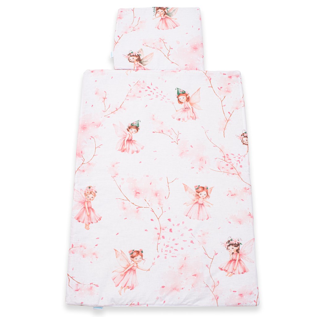 Nádherný oboustranný set New Baby Víly do kočárku. Set je vyroben ze dvou typů tkanin. Bavlněný materiál s krásným dětským motivem z jedné strany a Velvet materiál z druhé strany. Velvet je velice příjemný a jemný na dotek a po dlouhou dobu si zachovává svůj původní tvar. Je ideální jak pro miminka od narození, tak pro větší děti jako deka na hraní, do kočárku nebo na ven. Set obsahuje polštářek a přikrývku. Klademe důraz na kvalitu a proto je set z Velvet ušitý z velmi kvalitního materiálu, který nepouští barvu a nevyvolává alergické reakce. Set je jemný na dotek, hřejivý, tulivý, jedinečný a velmi odlišný od ostatních. Vše je vyplněno antialergickým vláknem. Složení: z jedné strany 100% bavlna potištěná krásným dětským vzorem, druhá strana je Velvet látka-100% polyester, výplň 100% antialergické vlákno. Materiál odpovídá normě Oeko-Tex Standard 100. Rozměry: polštářek: cca 30x25 cm, přikrývka: cca 75x50 cm. Tyto výrobky jsou bezpečné, protože: