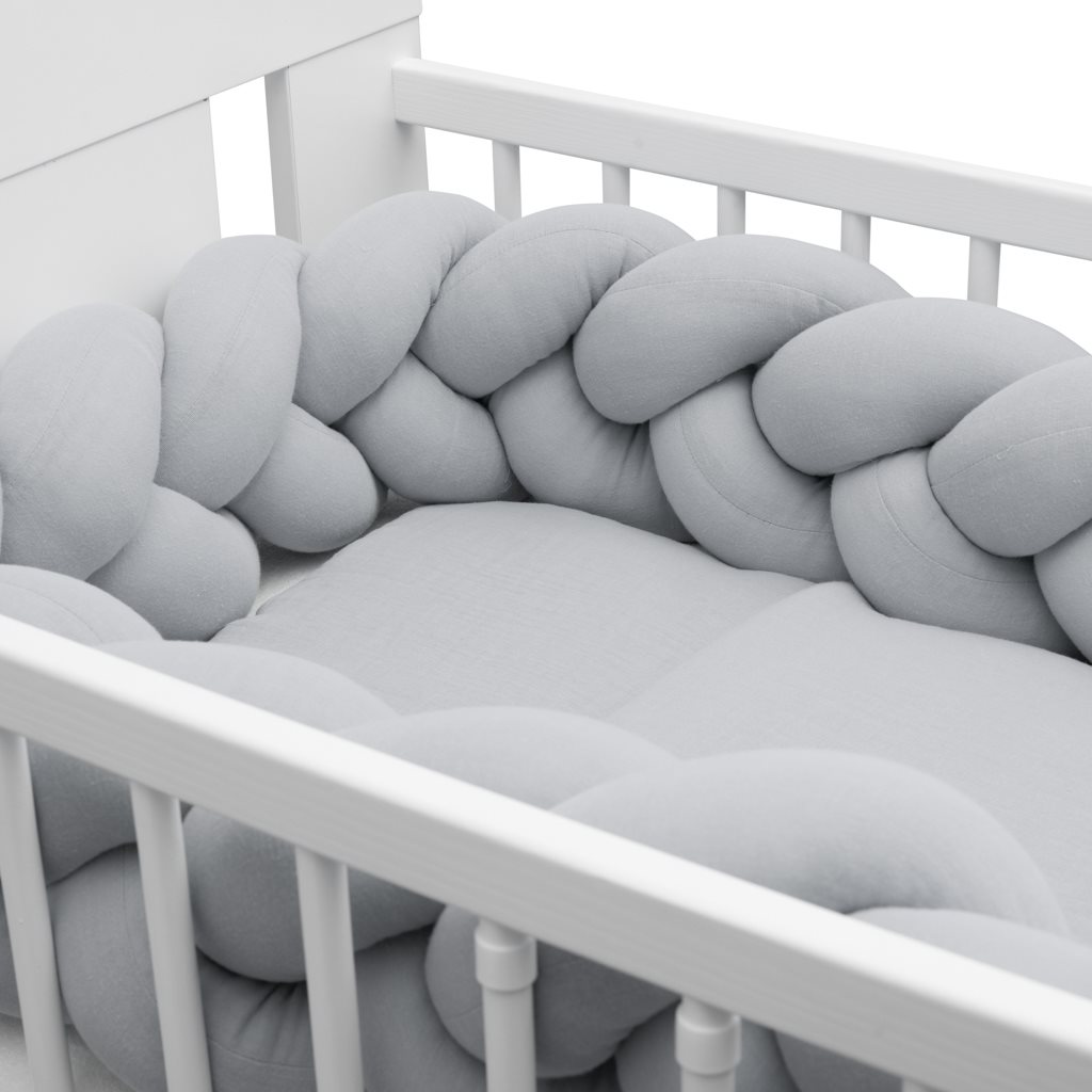 Heboučký a praktický pletený cop české značky New Baby je moderní alternativou tradičního nebo polštářového mantinelu nejen do dětské postýlky. Všechny tři prameny jsou vyrobeny z velmi kvalitního bavlněného materiálu a antialergické polyesterové výplně a ručně spletené do copu. Můžete jej použít v postýlce, kolébce, kde chrání dítě před tvrdými příčkami postýlky a izoluje od studené stěny. Ve vaší posteli splní funkci hnízdečka, kdy miminko jednoduše ovinete pro ještě větší pocit bezpečí a pohodlí. Mantinel se přizpůsobí každé postýlce a pomocí tří přiložených stuh jej snadno upevníte. Starší dítě jej může využívat pro zábavu nebo jako originální dekoraci dětského pokoje.