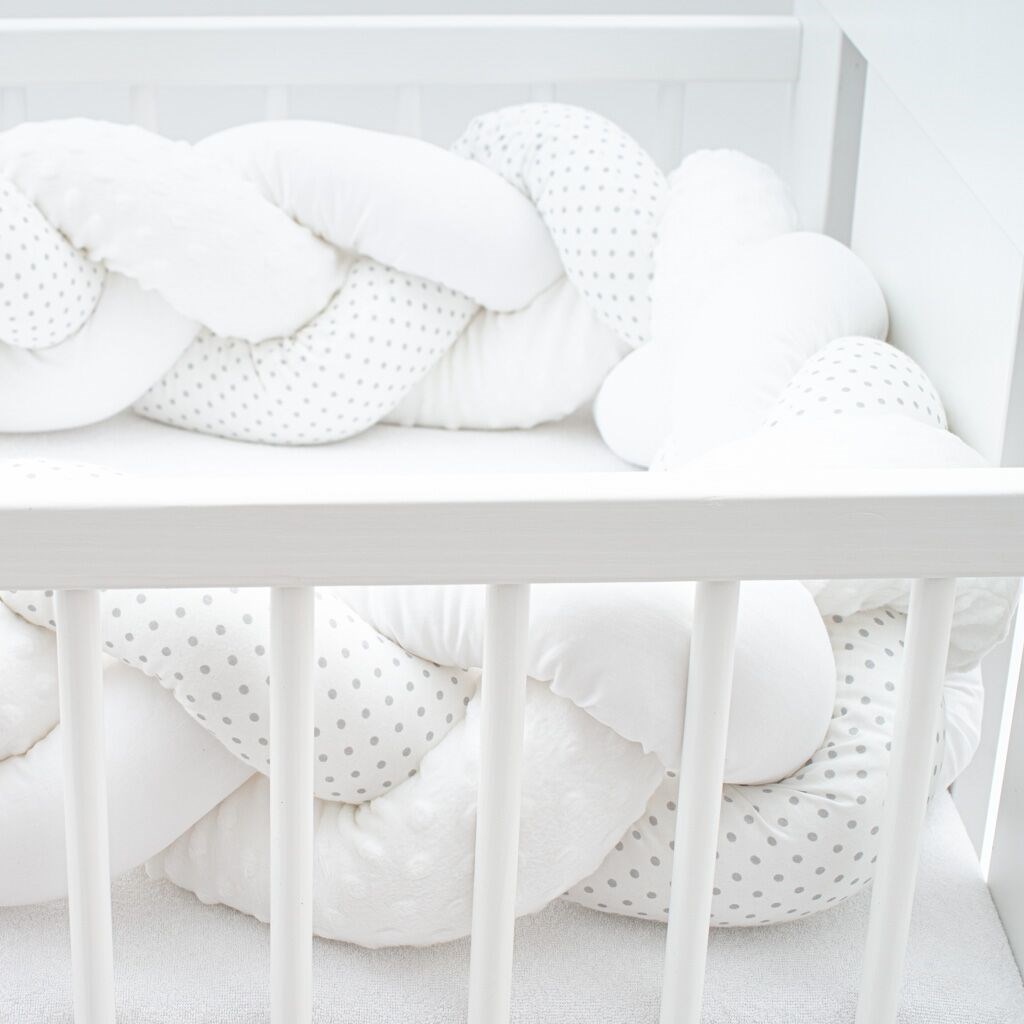 Heboučký a praktický pletený cop české značky New Baby je moderní alternativou tradičního nebo polštářového mantinelu nejen do dětské postýlky. Všechny tři prameny jsou vyrobeny z velmi kvalitního bavlněného materiálu, minky a antialergické polyesterové výplně a ručně spletené do copu. Můžete jej použít v postýlce, kolébce, kde chrání dítě před tvrdými příčkami postýlky a izoluje od studené stěny. Ve vaší posteli splní funkci hnízdečka, kdy miminko jednoduše ovinete pro ještě větší pocit bezpečí a pohodlí. Mantinel se přizpůsobí každé postýlce a pomocí tří přiložených stuh jej snadno upevníte. Starší dítě jej může využívat pro zábavu nebo jako originální dekoraci dětského pokoje.