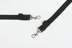 Dva nastavitelné popruhy zakončené karabinou umožňují snadné a bezpečné uchycení nosiče do kufru auta. Popruhy musí být připnuty do rukojetí nosiče a nastaveny na délku, aby se zabránilo pohybu nosiče během jízdy.