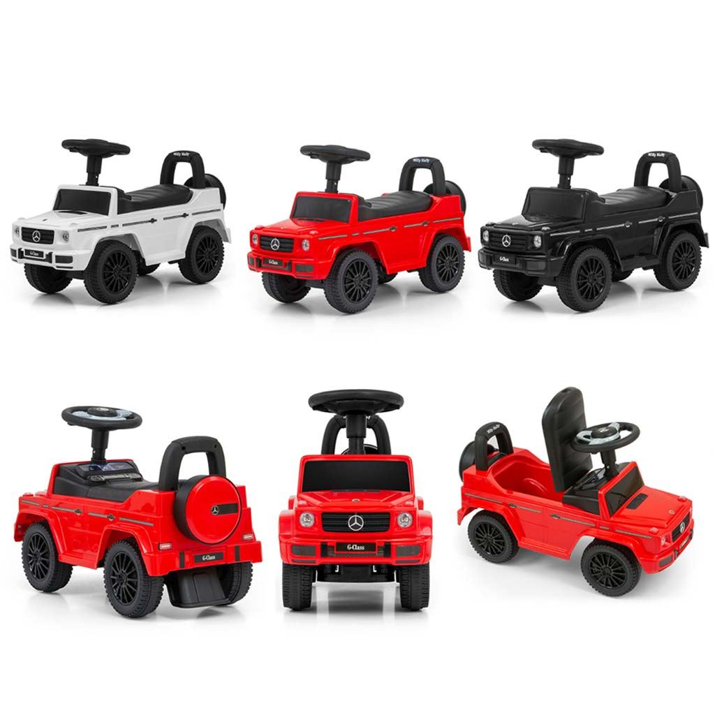 Dětské odrážedlo MERCEDES G350d je vyrobeno v licenci koncernu MERCEDES. Váš malý závodník či závodnice se v něm bude cítit jako v opravdovém džípu. Odrážedlo je vyrobeno s důrazem na každý detail a kvalitu použitých materiálů. Jeho vzhled upoutá pozornost nejen každého dítěte, ale i rodiče. Odrážedlo pomáhá rozvíjet motorické schopnosti dítěte a Váš malý závodník či závodnice si s ním užije spoustu zábavy a legrace. Autíčko má na tříramenném volantu tlačítka vydávající různé melodie, zvuk motoru nebo houkačku. Je určeno jak pro nejmenší děti, které už umí sedět, tak i pro děti, které se už naučily chodit. Odrážedlo má otočná přední kola a široké a komfortní sedadlo s úložným prostorem. Baterie nejsou součástí balení (2x AA 1.5V).