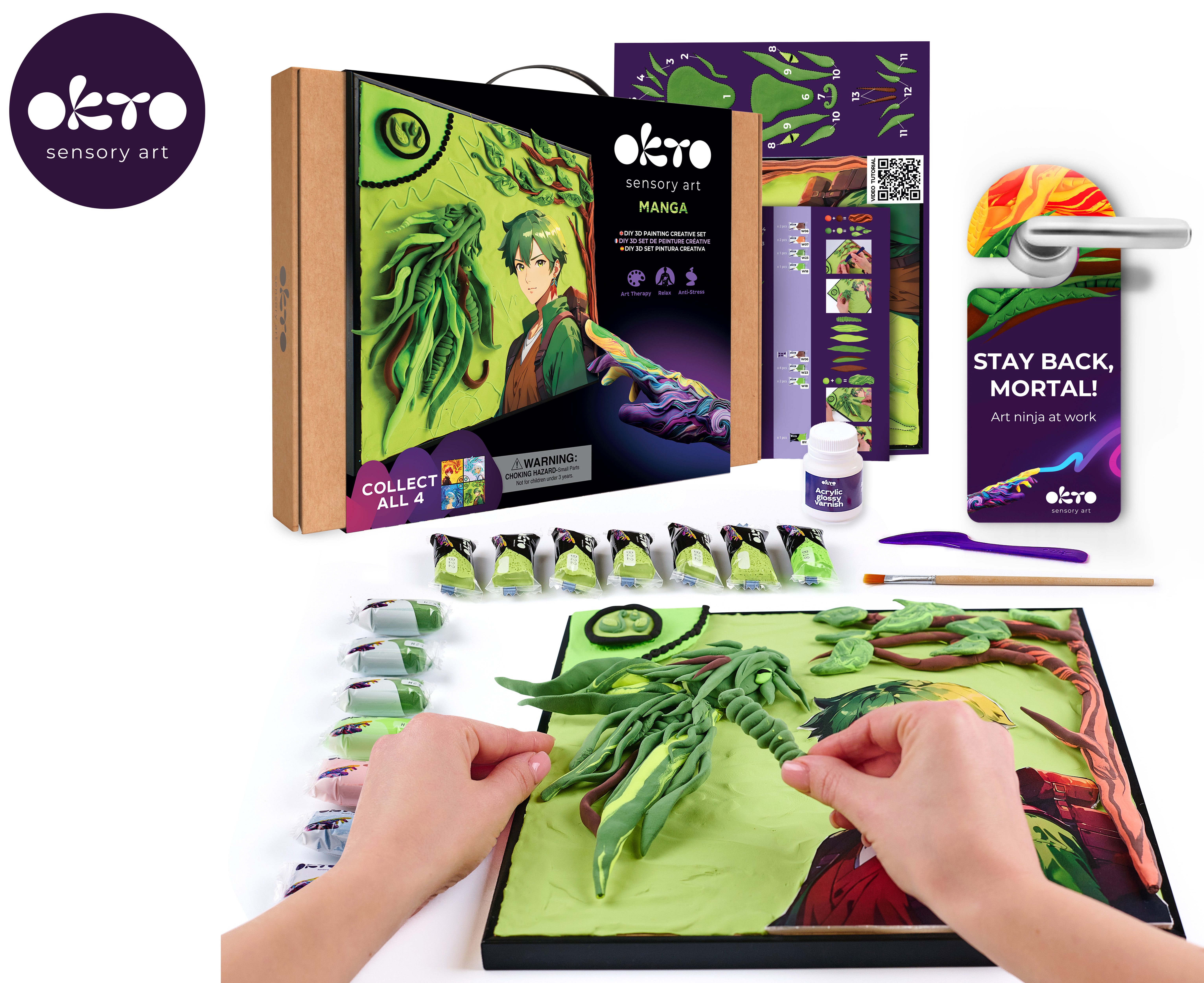 OKTO Manga motiv živlů "Země" výtvarný set. Velikost rámu 30x40 cm. Vytvarujte obrázek podle návodu. Obsah balení - rám, obrázkový návod, modelovací nástroj, sada samoschnoucí modelovací hmoty, akrylový lak 20 ml, štětec.