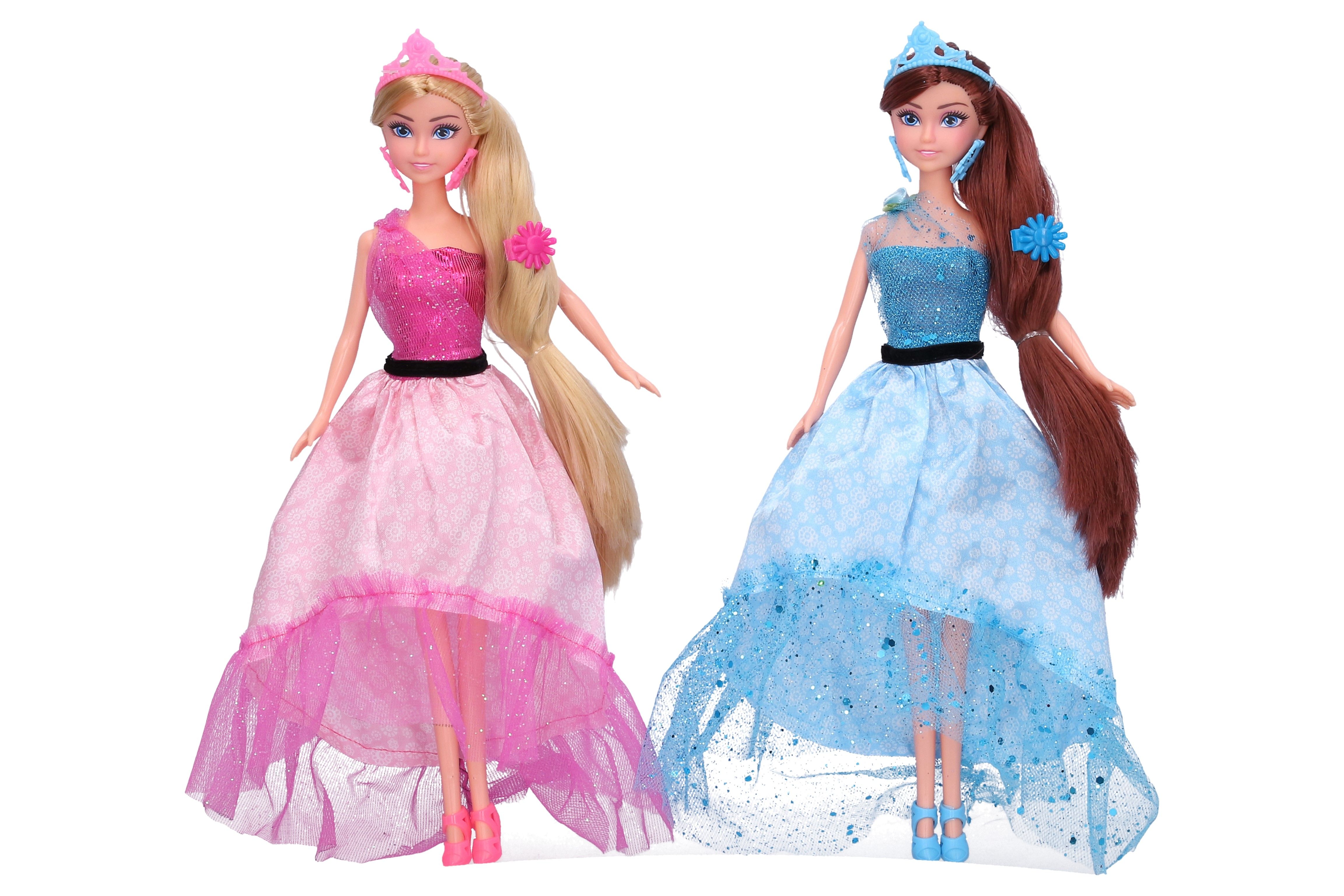Panenka princezna s příslušenstvím. Velikost 29 cm. Příslušenství: 2 hřebeny, příčesek, fén. 2 varianty: modrá, růžová