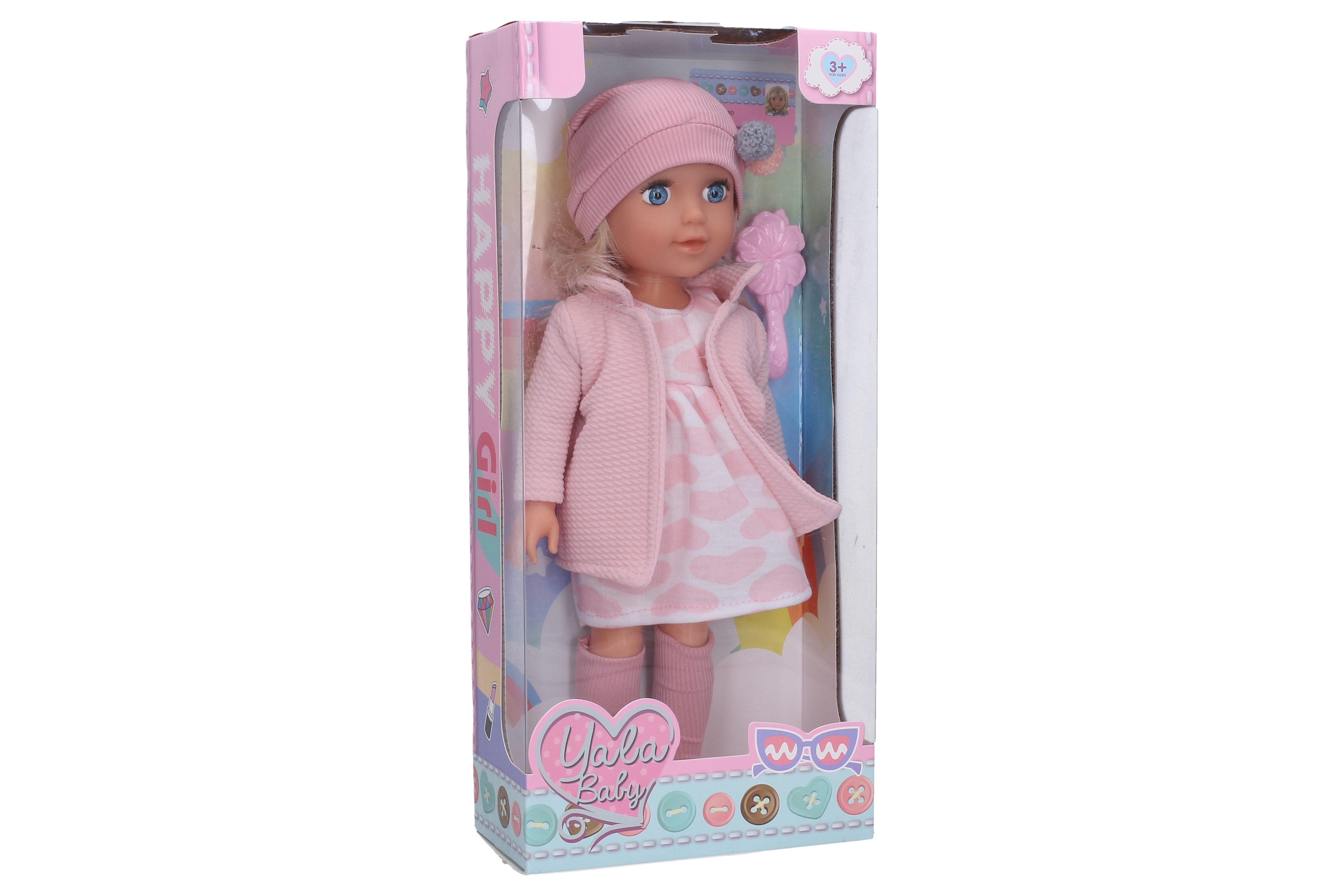 Panenka s hřebenem. Velikost 35 cm. Obsahuje panenku a hřeben na vlasy.
