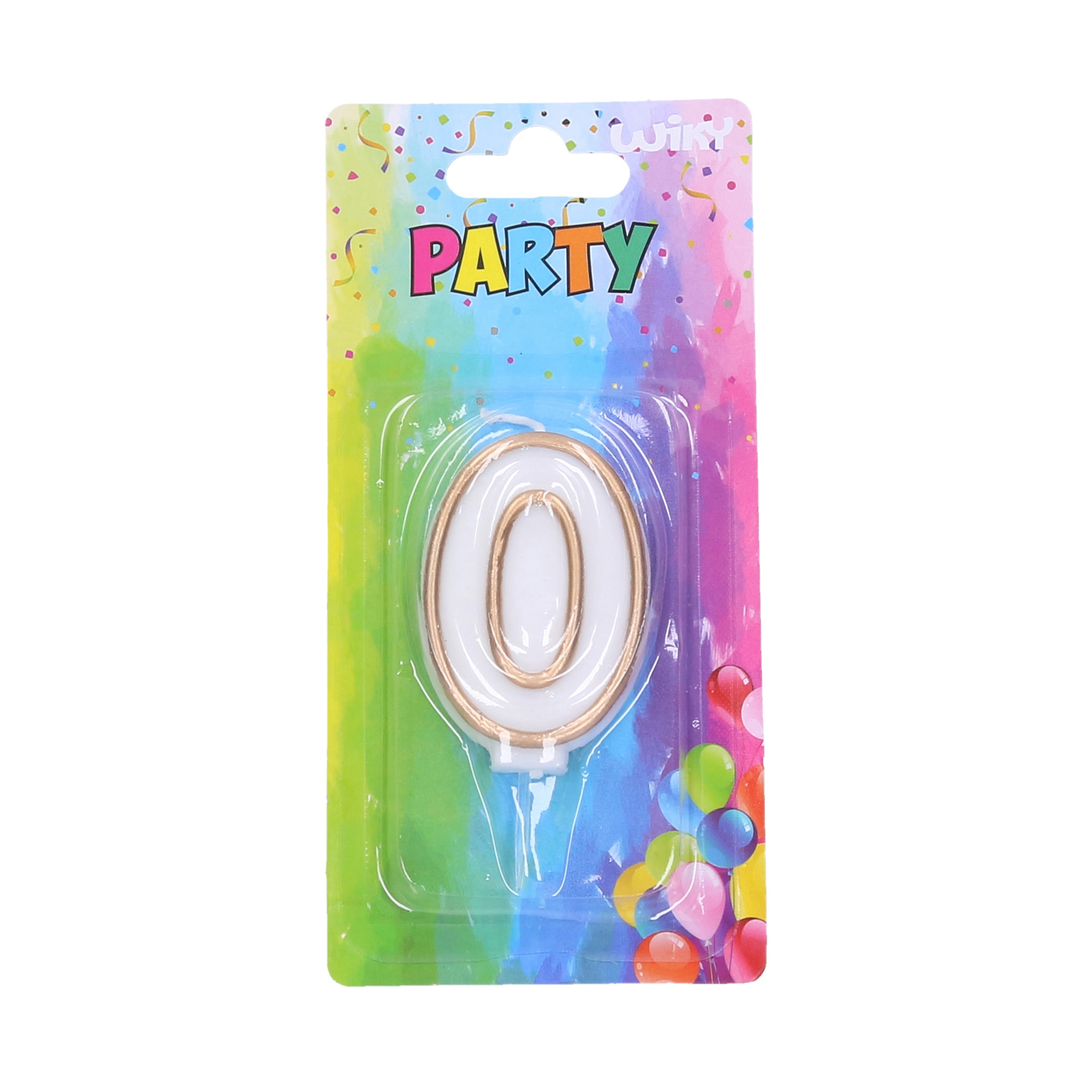 Bílá svíčka se zlatým lemem ve tvaru čísla se stojánkem z vosku pro pohodlné a pevné umístění na dort.  Velikost: 5,6 cm
