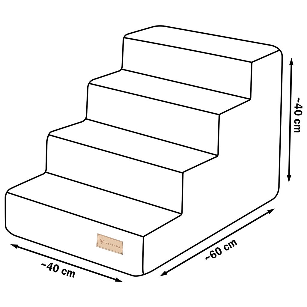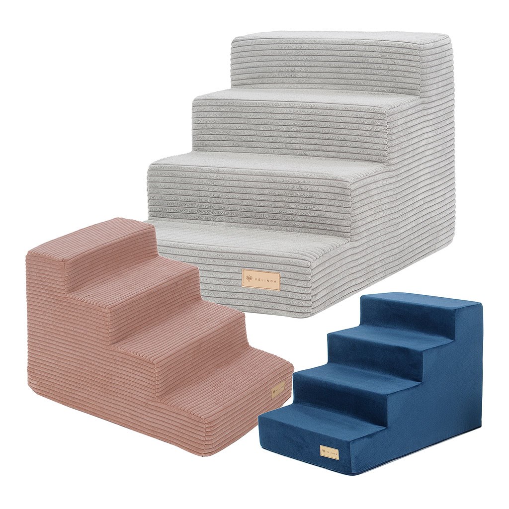 Schody pro psy a kočky jsou vyrobeny z vysoce kvalitních materiálů: polyuretanová pěna (T21) potažená potahovou látkou, která zajišťuje dlouhou životnost výrobku a pohodlí při používání.