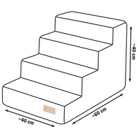 Schody pro psy a kočky jsou vyrobeny z vysoce kvalitních materiálů: polyuretanová pěna (T21) potažená potahovou látkou, která zajišťuje dlouhou životnost výrobku a pohodlí při používání.