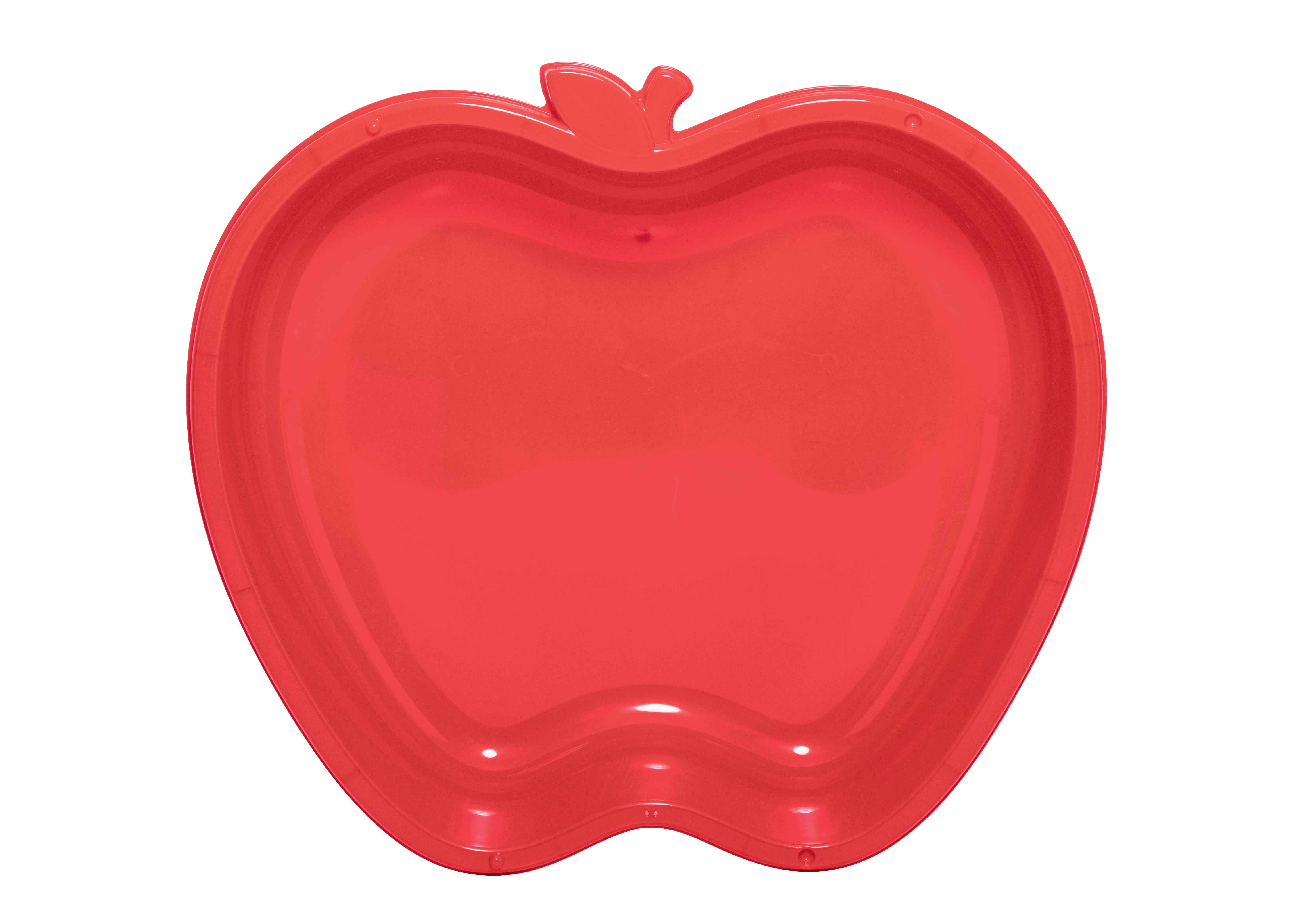 Plastové pískoviště ve tvaru jablka. Při koupi dvou kusů může druhý kus sloužit jako víko (výrobek je uzpůsobený ke vzájemnému propojení).