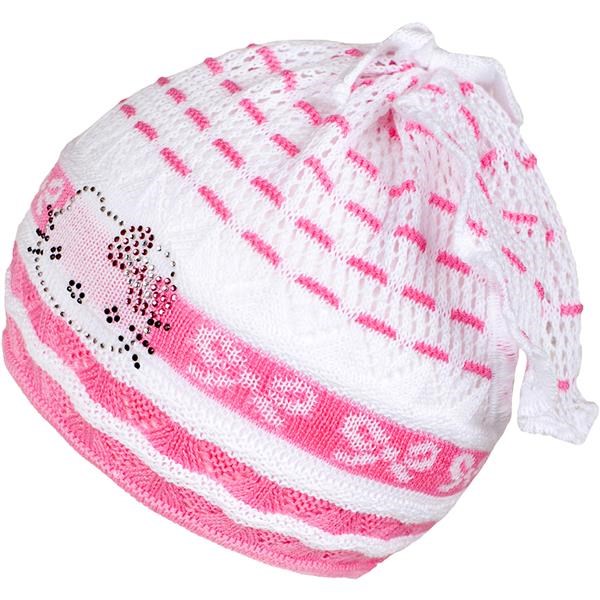 Jarní pletená čepička-šátek New Baby. Čepičku zdobí obrázek kočičky s třpytivými kamínky. Čepička je ušitá z prodyšného materiálu, proto je vhodná pro jarní i podzimní dny. Ideální pro malé i větší slečny. Složení: 100% bavlna. Materiál je pružný. Obvod kolem hlavičky cca 40-50 cm.