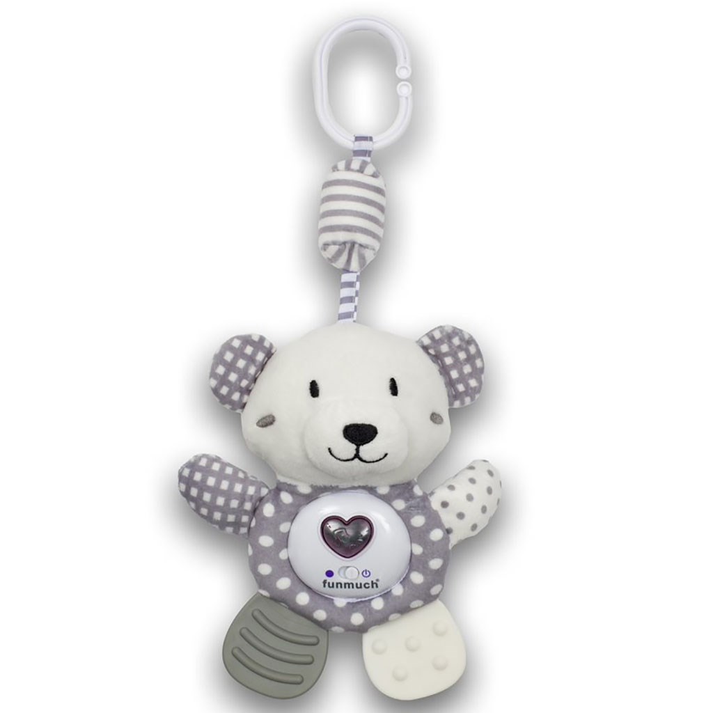 Krásná barevná závěsná plyšová hračka Baby Mix pro miminka. Hračka má barevná kousátka a plastový klip na uchycení hračky ke kočárku, po natáhnutí vibruje, svítí a hraje příjemné zvuky. Výška cca 22 cm. Vhodné pro děti od prvních dnů života.